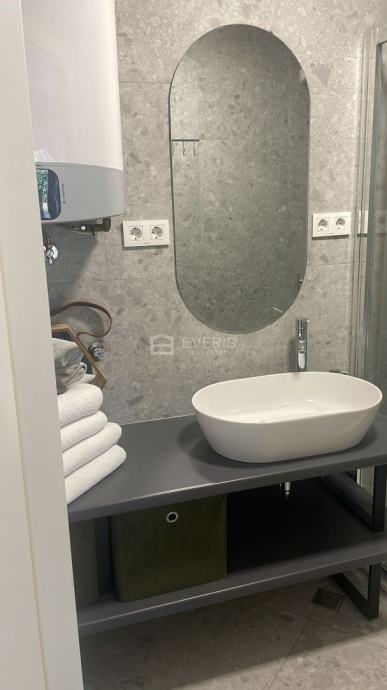 Potpuno opremljen stan – uključuje ugradbenu kuhinju po mjeri, bračni krevet, perilicu rublja, namještaj i sve ostalo potrebno za useljenje odmah. Posjeduje kategorizaciju kao studio apartman sa 4 zvjezdice