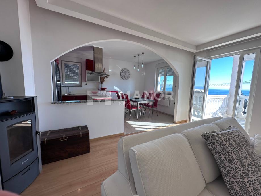 Stan odiše prostranošću i svjetlošću, a posebnu čar daje terasa od 20 m² s koje se pruža