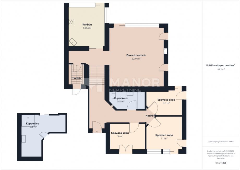 Manor predstavlja 3S+DB stan smješten na području Ičića, Opatija, udaljen svega nekoliko minuta od mora.