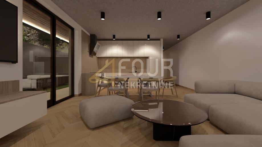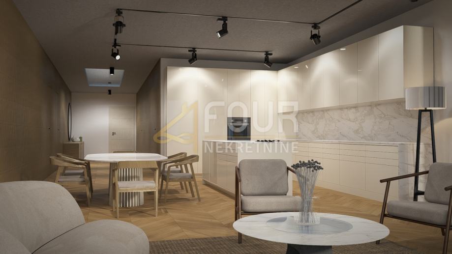 Uz stan dolaze dva garažna parkirna mjesta i spremište. Nekretnina se prodaje potpuno završena po principu „ključ u ruke“, bez namještaja.