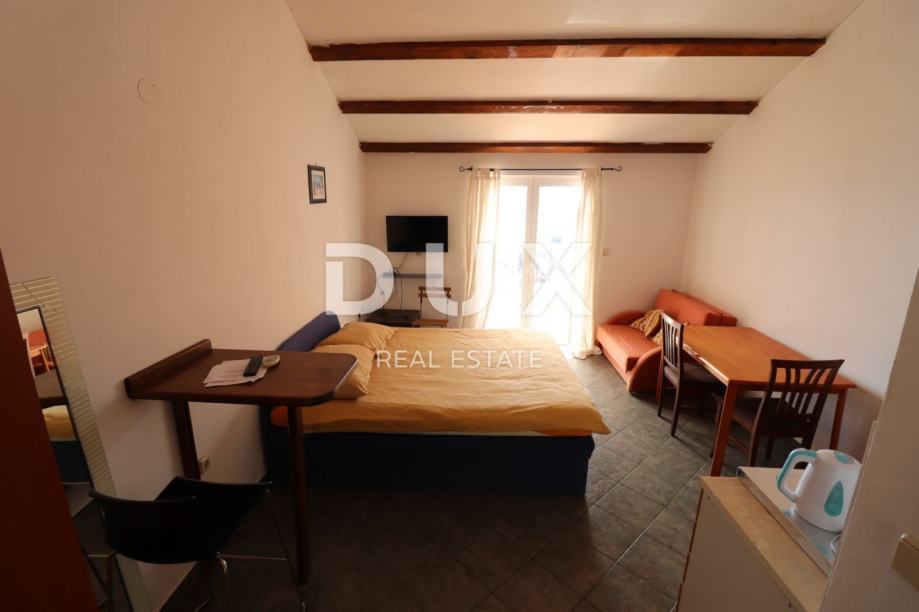 Stan u kući se nalazi na drugom katu. Sastoji se od kuhinje i spavaće sobe u jednoj prostoriji, lođe i kupaone. Ispred ulaza od stana se nalazi dodatna terasa, a s lođe se pruža predivan pogled na more. Stanu pripada parkirno mjesto. Prilika s obzirom na blizinu plaže i za investiciju.