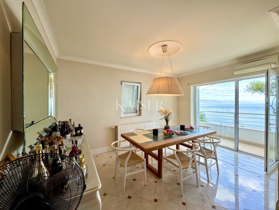 Iz blagovaonice se može izaći na manji balkon (4 m2), a iz dnevnog boravka na veliku terasu (25 m2), u oba slučaja s jugoistočnom orijentacijom i prekrasnim pogledom na more, marinu Ičići i cijeli Kvarnerski zaljev.