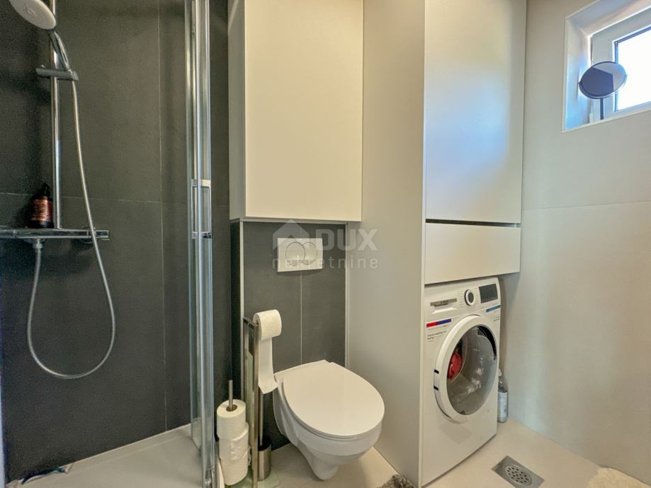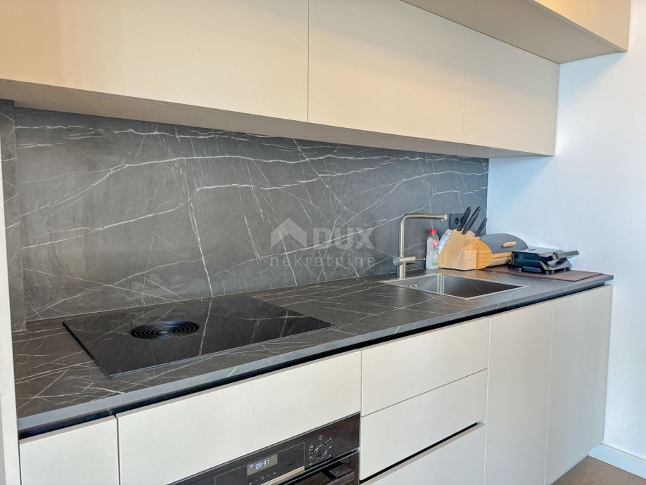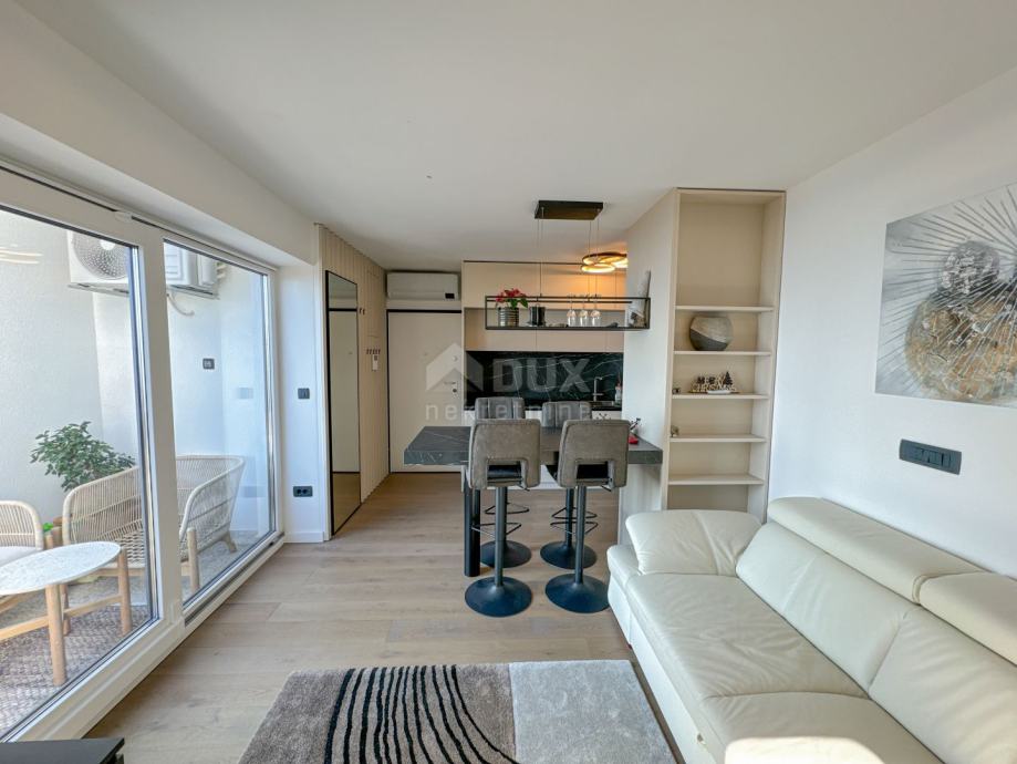 Idealan stan veličine 40 m2, odličnog koncepta uređen prekrasnim novim namještajem toplih elemenata visoke kvalitete, nalazi se blizu mora i grada Opatije. Sastoji se od open space dnevnog boravka s kuhinjom i blagovaonicom te jedne spavaće sobe s pogledom na more. Elegantno i decentno uređena kupaonica dolazi sa svim potrebnim aparatima. U svakoj prostoriji nalazi se inverter klima uređaj, a zgrada ima toplinsku stiropor fasadu.