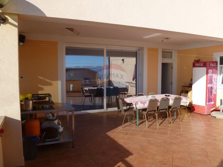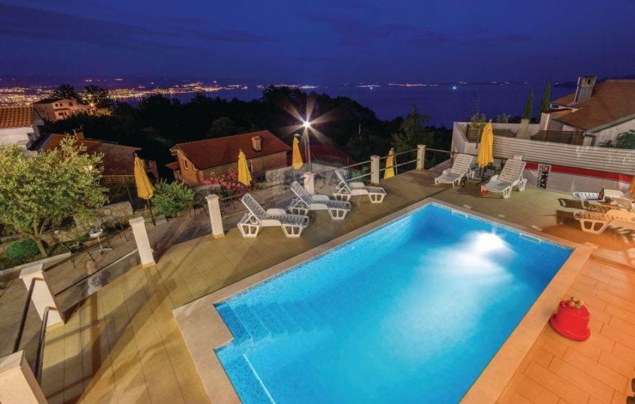 Kuća ima veliki vanjski bazen veličine 25 m2 sa kojeg se pruža izvanredan pogled na cijeli kvarnerski zaljev, a posebno prema Malim vratima i otocima. Tu se nalazi i vanjski kamin, tuš, dio za razonodu i odmor.