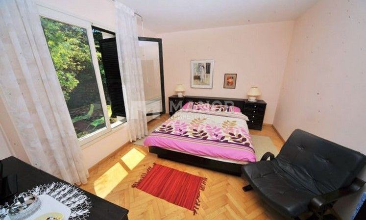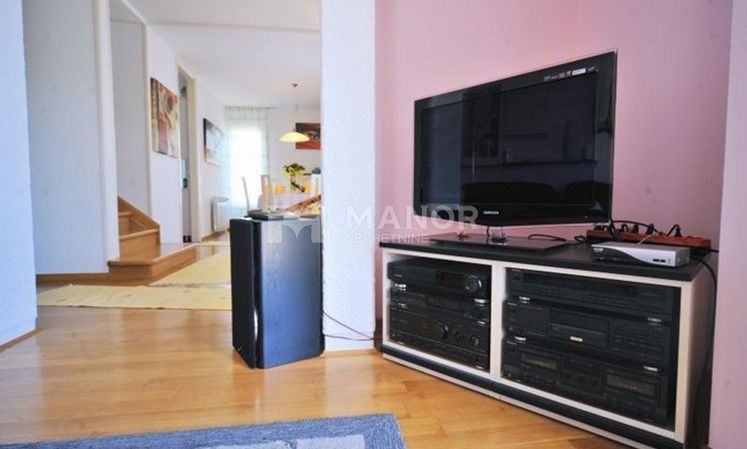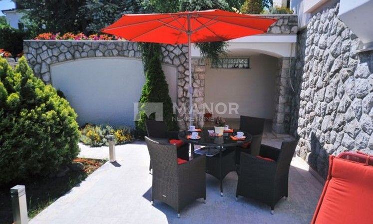 Okućnica je ukupne površine 930 m2 i sadrži vanjsku terasu, kamin, bazen i četiri parkirna mjesta.