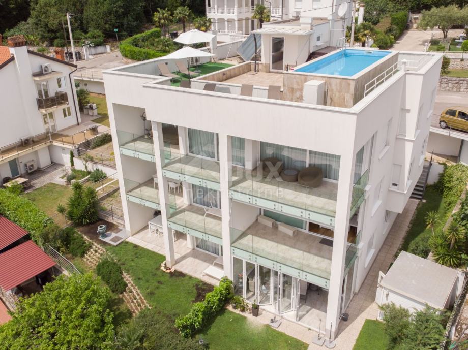 Krovna terasa s bazenom je jedistvena karakteristika u Ičićima i u Opatiji, s kojeg se pruža nesmetani panoramski pogled na more koji ostavlja bez teksta.