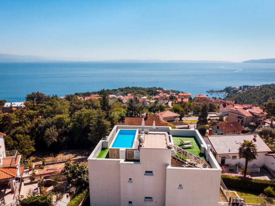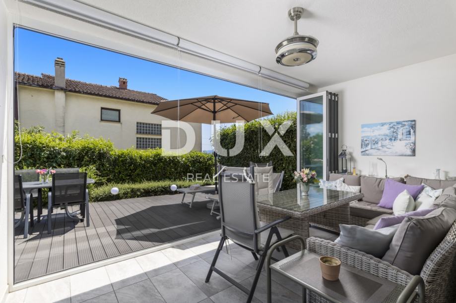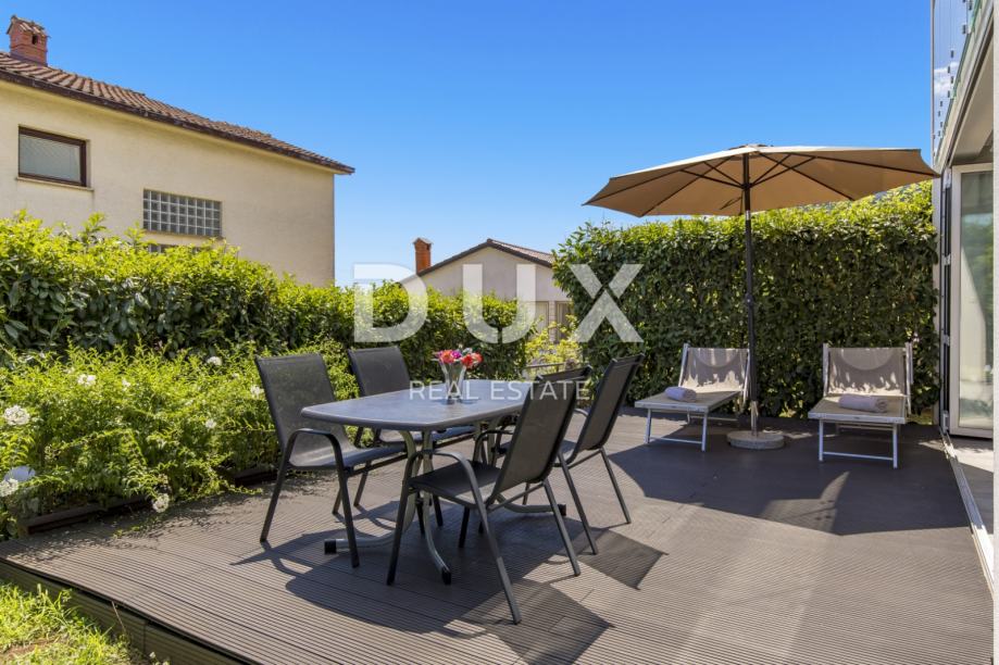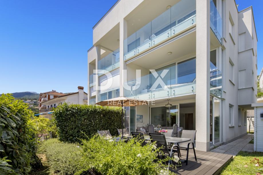 OPATIJA, IČIĆI - stan u novogradnji za najam, vrt, bazen, privatni parking, pogled na more