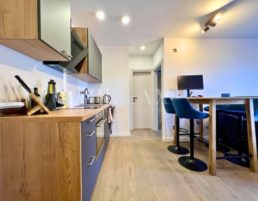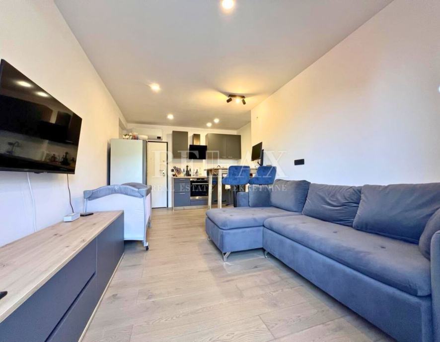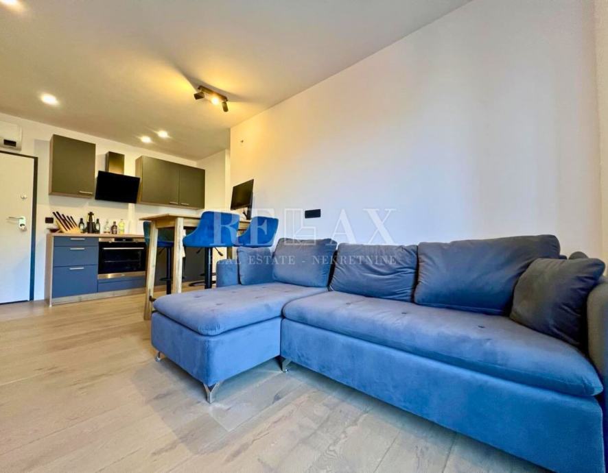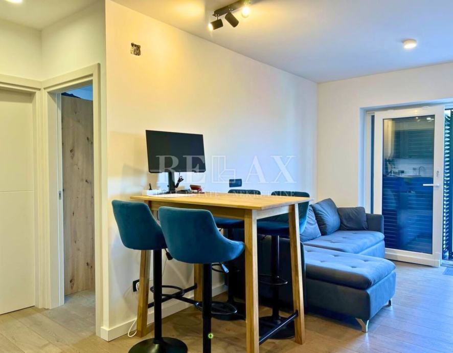 Stambeni prostor obuhvaća kuhinju povezanu s blagovaonicom i dnevnim boravkom, jednu spavaću sobu te kupaonicu. Dnevni dio stana ima izlaz na sunčanu terasu idealnu za uživanje na otvorenom.