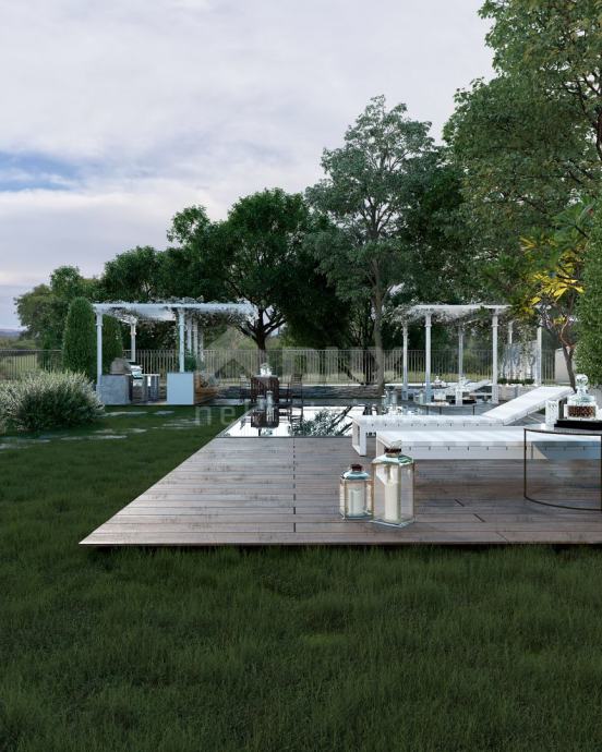 Projekt se gradi na okućnici od 805m2 i uključuje veliku podzemnu garažu, prizemlje sa zajedničkim bazenom, sunčalištem i sjenicom s roštiljem te sveukupno 9 stanova (6 apartmana i 3 stana)