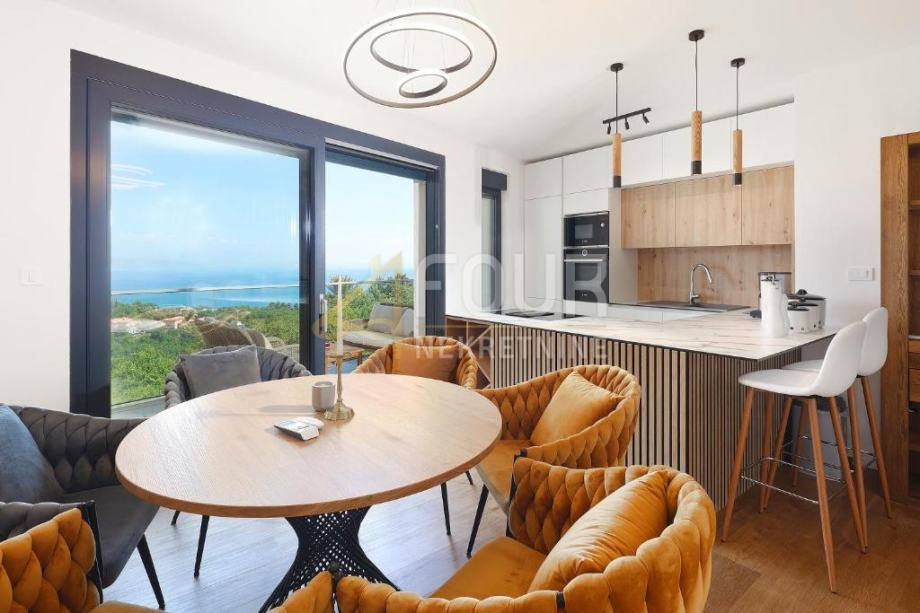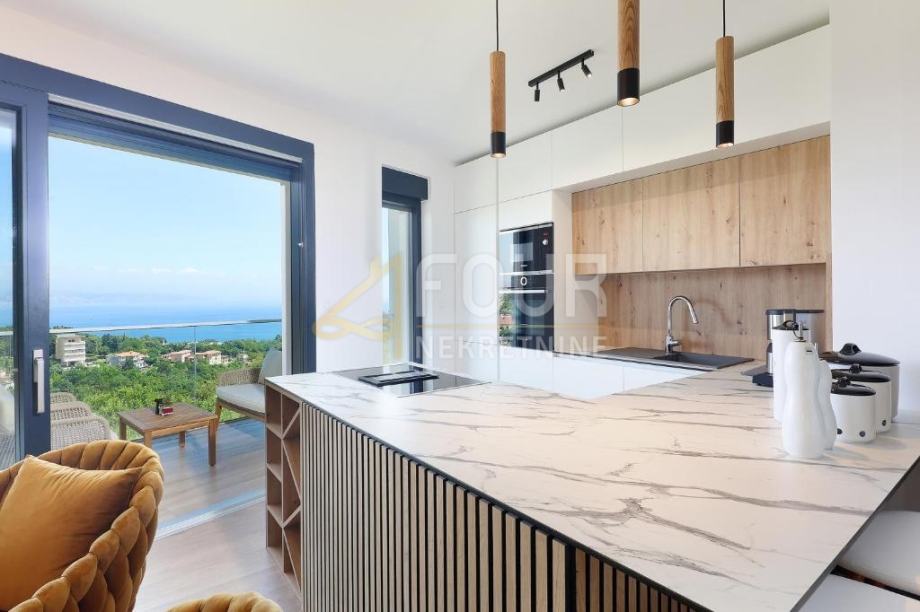 Uz to, na raspolaganju su terasa i balkon (ukupne površine 19.06m2) s kojih se pruža otvoren pogled na more i Kvarner.
