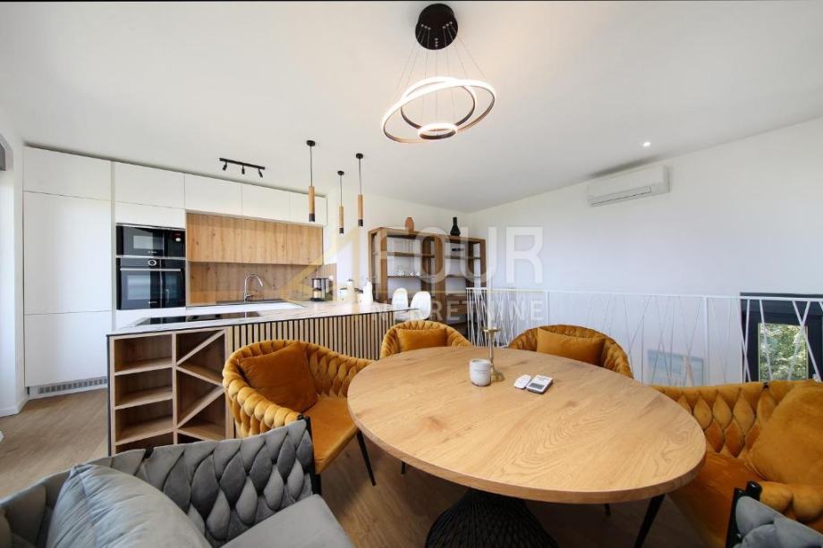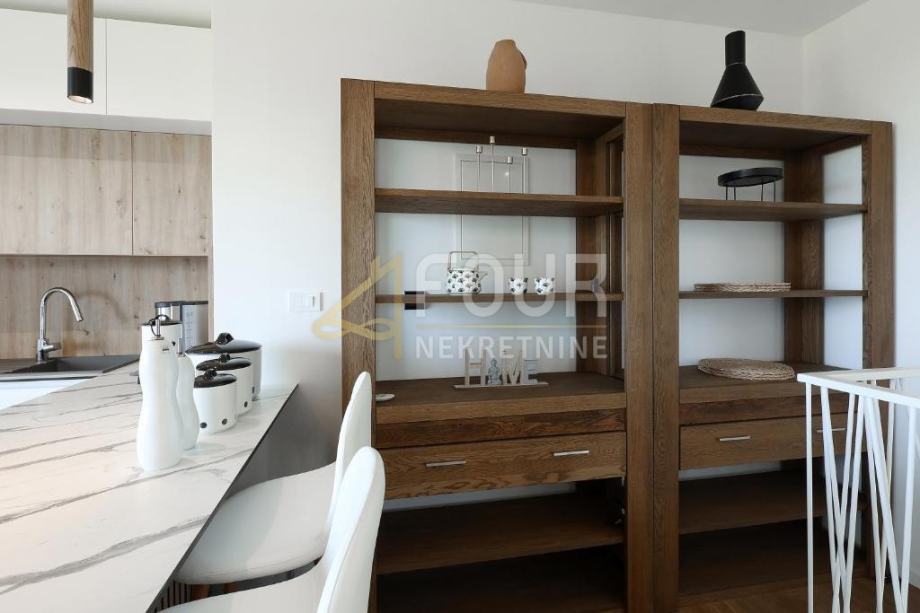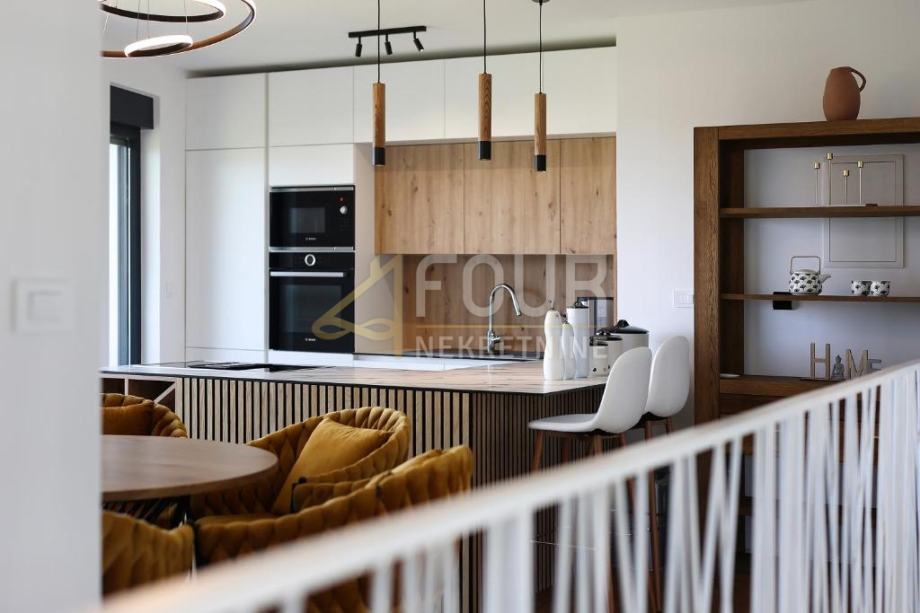 Nekretnina je u potpunosti namještena i opremljena najsuvremenijim sustavima: centralno i podno grijanje, dizalica topline, klima uređaj, električne rolete te protuprovalna vrata.