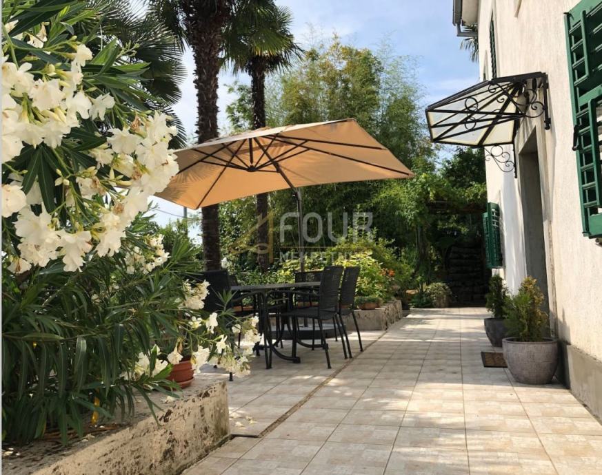 Samostojeća primorska kuća ima dvije stambene jedinice i lijepu okućnicu od 700m2 s terasom, vrtom i prekrasnim pogledom.