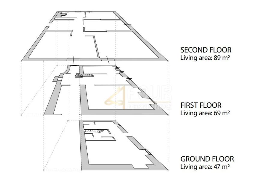 Kuća je razvedena na tri etaže, a ima još i pomoćni objekt od 31m2.