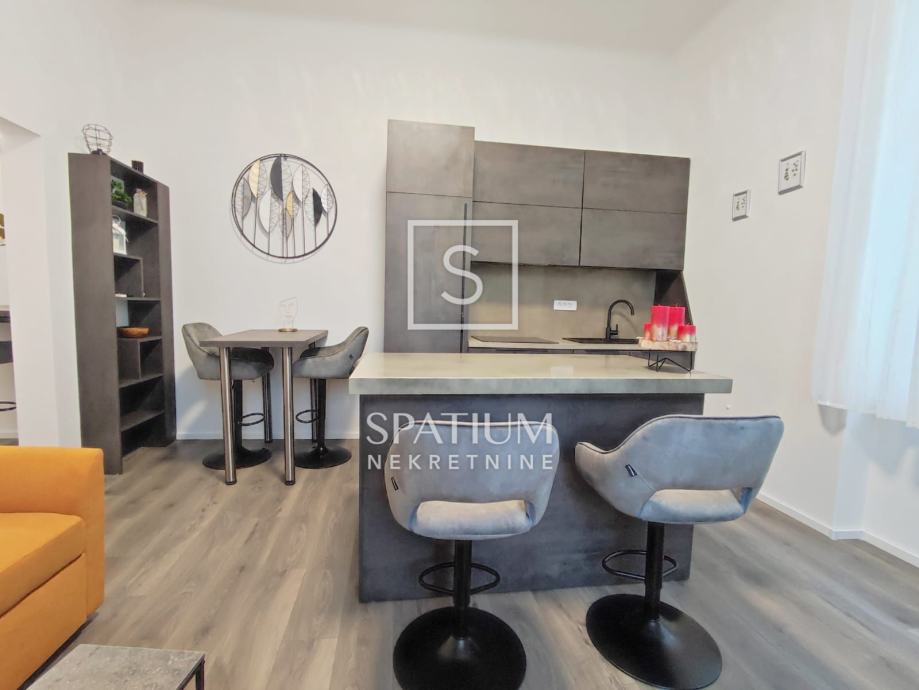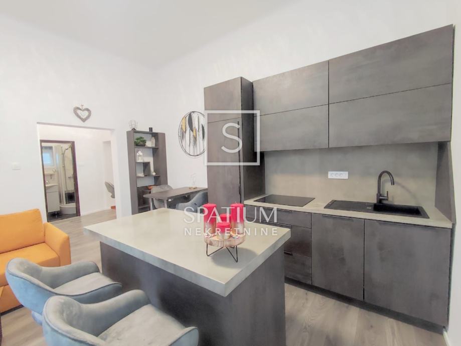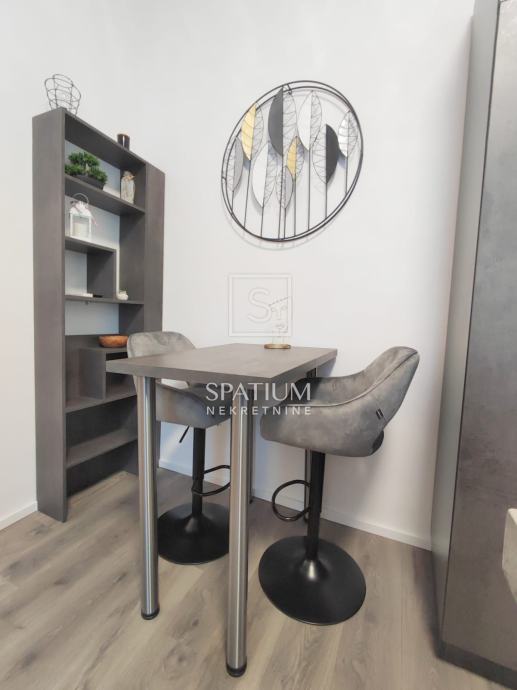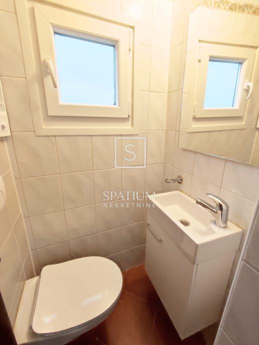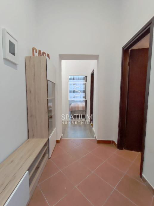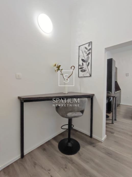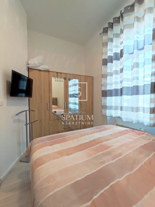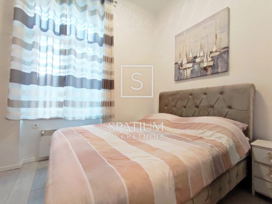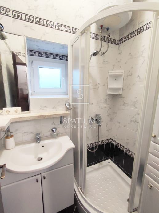 Površine je 45 m2, a sastoji se od ulaznog hodnika, spavaće sobe, kuhinje s blagovaonom i dnevnim boravkom sa čijeg prozora se vidi more, WC-a i zasebne kupaone. Stan je izuzetno svijetao, kompletno renoviran i namješten. Grijanje i hlađenje je putem klima uređaja i norveškog radijatora. Dostupan je vlastiti besplatan parking udaljen 100 m od stana.