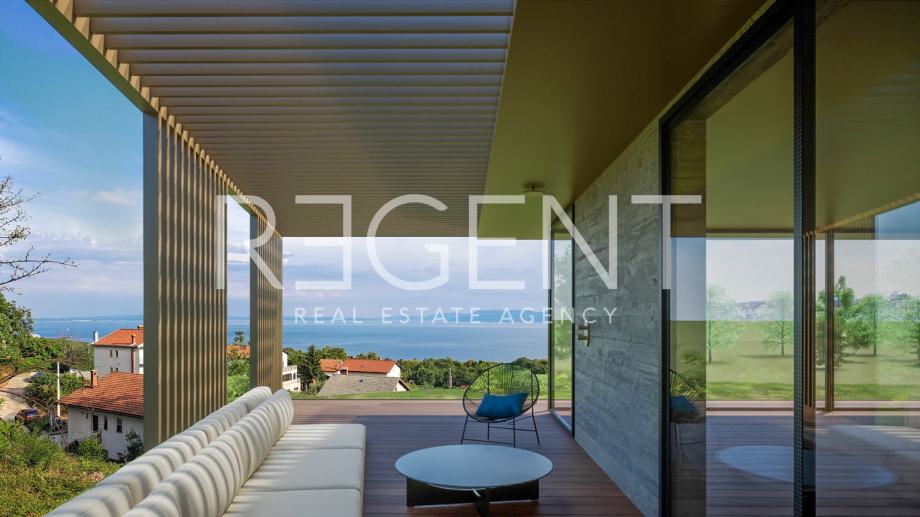 U mirnom naselju udaljenom 10-ak minuta od Opatije i 15 min od centra Rijeke u luksuznom stambenom kompleksu smjestio se četverosoban stan u prizemlju ukupne površine 168 m2.Sastoji se od velikog dnevnog boravka, blagovaonice i kuhinje, hodnika, toaleta, praonice i ostave u zapadnom dijelu stana. Dnevni boravak je od vanjskog dijela odvojen velikom kutnom staklenom stijenom sa pragovima u ravnini poda na podizno klizni sistem otvaranja. Kada je staklena stijena otvorena dobiva se jedinstveni prostor koji objedinjuje dnevni boravak i blagovaonicu sa prostranom vanjskom terasom gdje je predviđeno mjesto za blagovaonski stol, lounge garnituru te jacuzzi. Pergola natkriva ukupno 49 m2 terase.Na istočnom dijelu stana nalaze se tri spavaće sobe, dvije kupaonice od kojih je jedna master spavaća soba kojoj pripada prostrana kupaonica s kadom, walk in ormar te izlaz na veliku terasu. Svaka soba ima izlaz na terasu.Grijanje i hlađenje stana predviđeno je putem dizalice topline.Za grijanje je predviđen sustav podnog grijanja koji se nalazi u svim prostorijama a za hlađenje stropni i zidni ventilokonvektori. Stan ima vlastiti videonadzor i video portafon.Površina zatvorenog prostora je 134 m2. Ukupna površina stana s pripadcima iznosi 168 m2.Za sve ostale informacije slobodno nas kontaktirajte!Za više informacija, kontaktirajte našeg agenta na brojeve telefona: