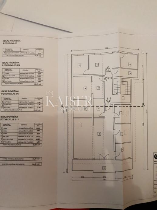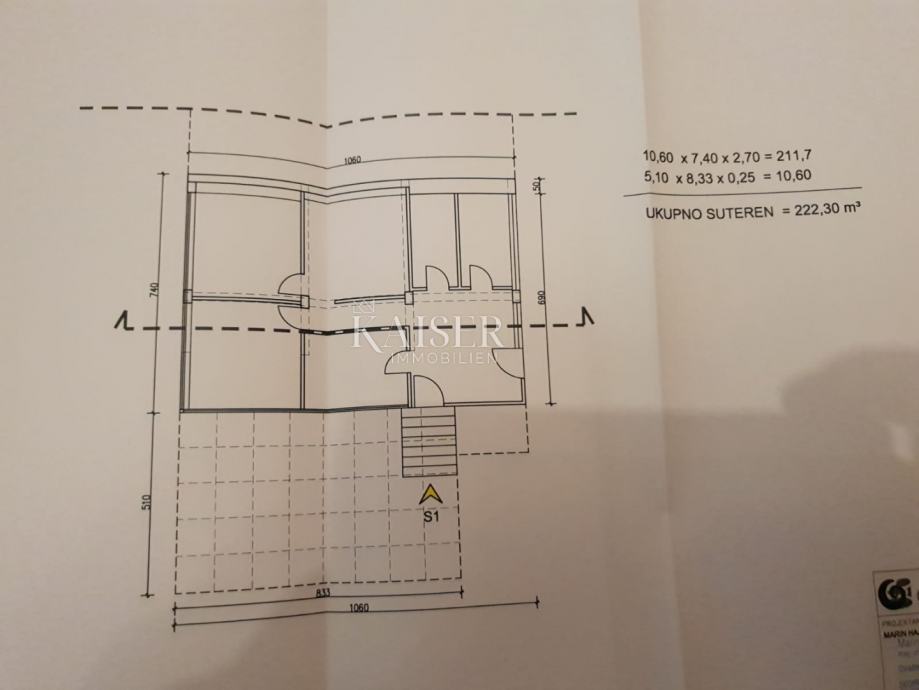 Kuća ima 4 nadzemne etaže (suteren, prizemlje, 1. kat i potkrovlje) ukupne građevinske brutto površine 715,80 m2