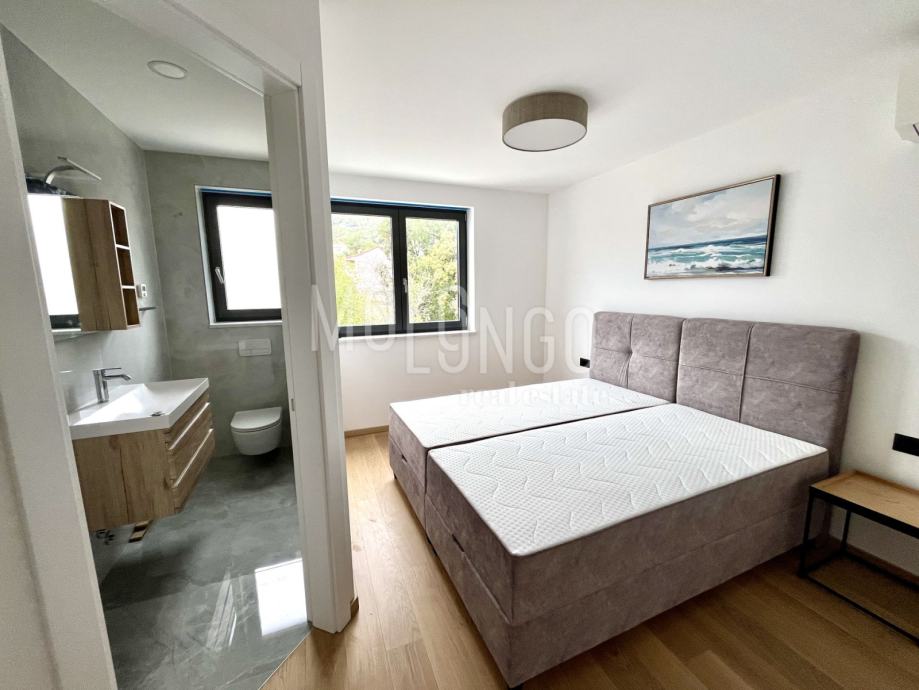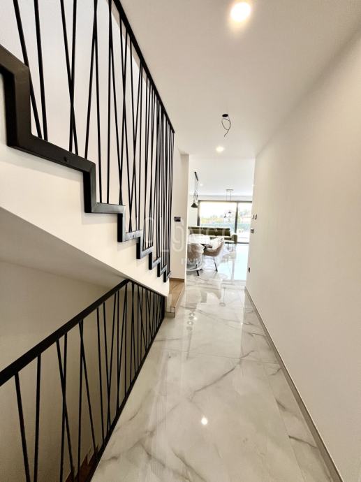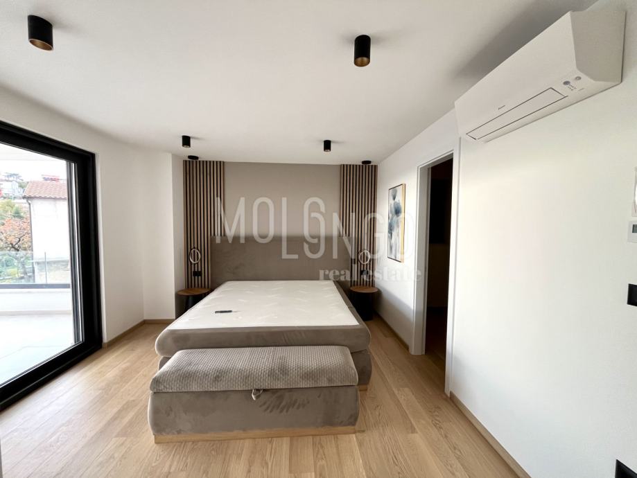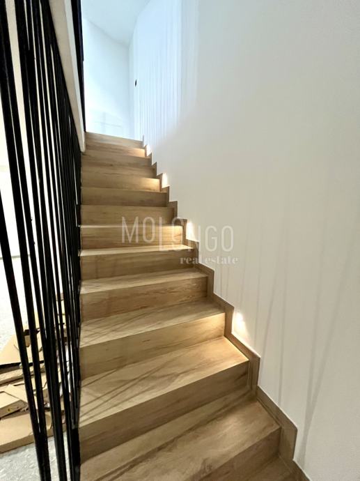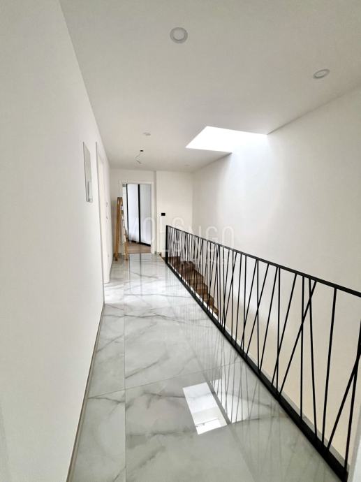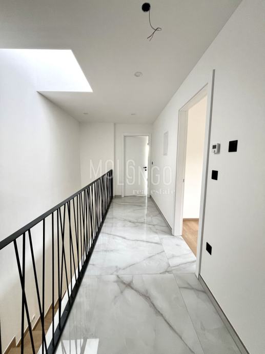 Na katu su smještene 3 spavaće sobe od kojih su 2 master sobe sa izlazom na terasu sa koje se pruža pogled na more.