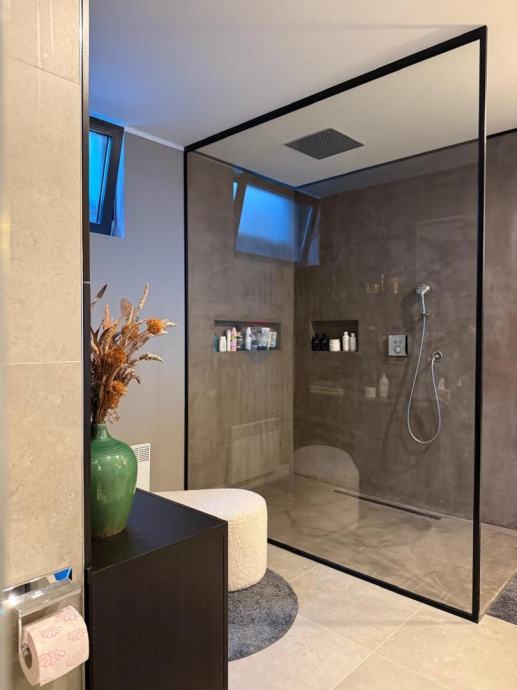 Kuća je vrlo kvalitetno napravljena, nije se štedjelo na materijalima i opremi te je s ukusom namještena (vinil najviše klase, mikrocement, aluminijska stolarija, brački kamen itd.)