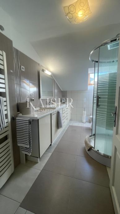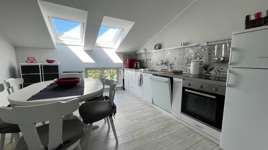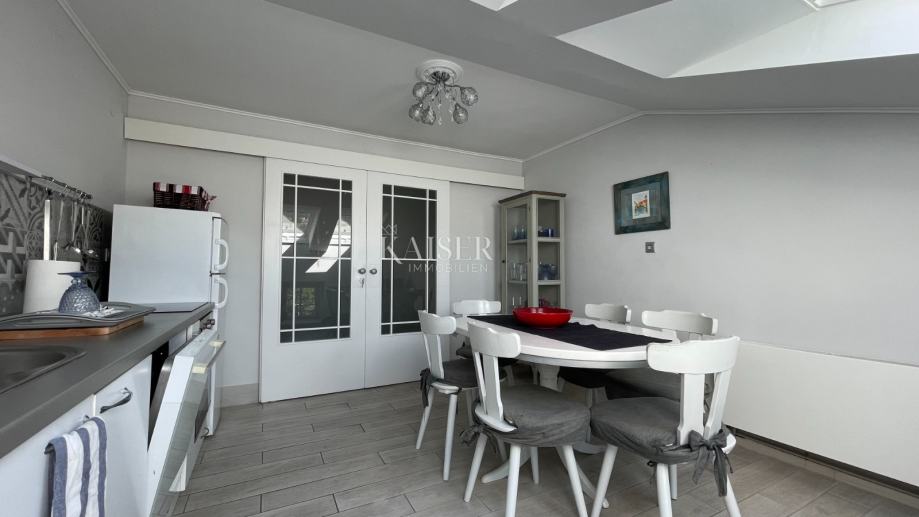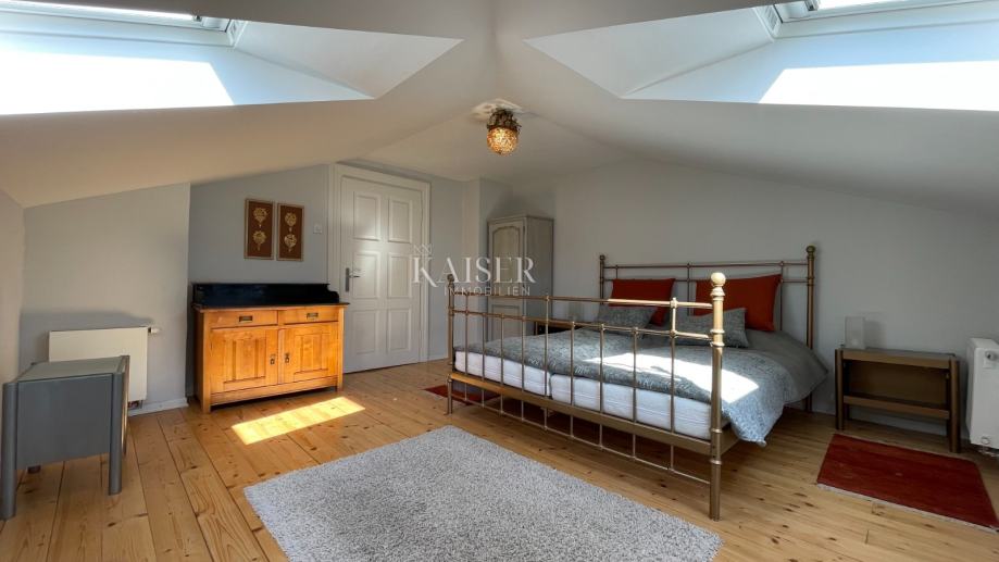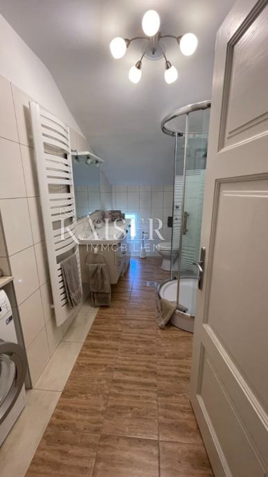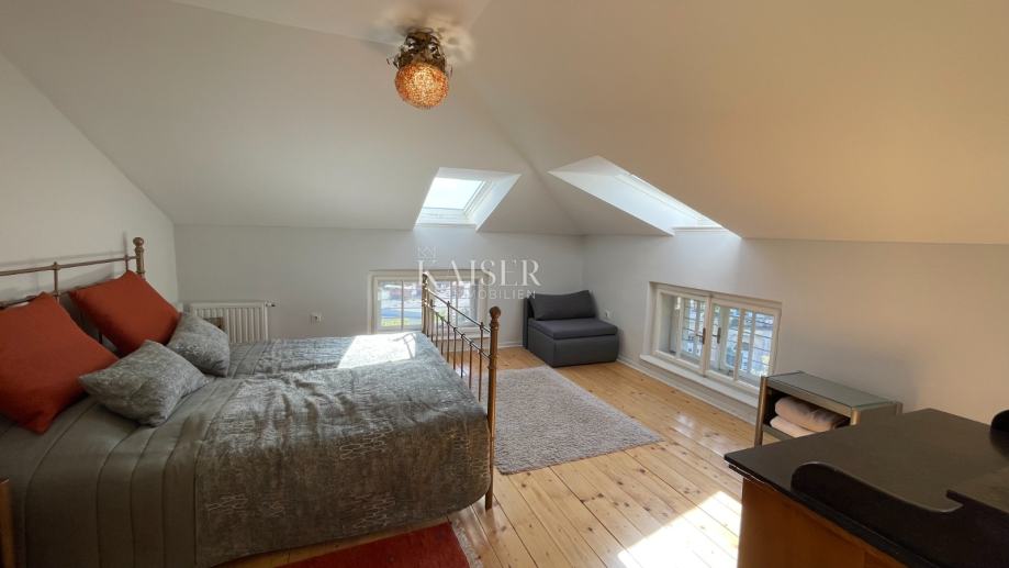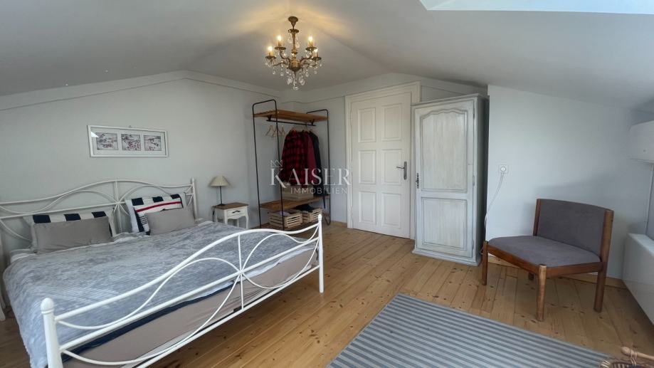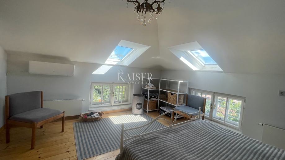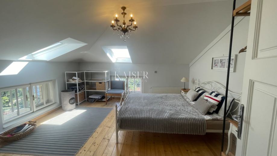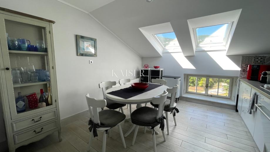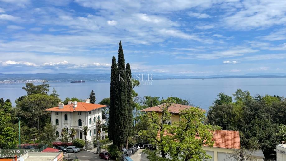 Agencija za nekretnine Kaiser Immobilien ponosno predstavlja jedinstvenu priliku za kupnju prekrasnog stana smještenog na zadnjem 3. katu uredne Austrougarske vile iz 1908. godine u Lovranu. Vila sadrži ukupno 5 stanova i nalazi se samo 100 metara od plaže i šetališta Lungomare, 3,5 km od Opatije.