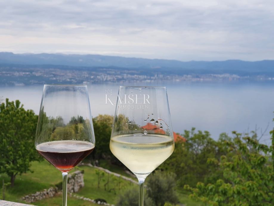 Kuća ima terasu sa predivnim pogledom na Kvarner od kojeg zastaje dah. Okružena je zelenilom, a u vrtu ima svoj mali privatni voćnjak.