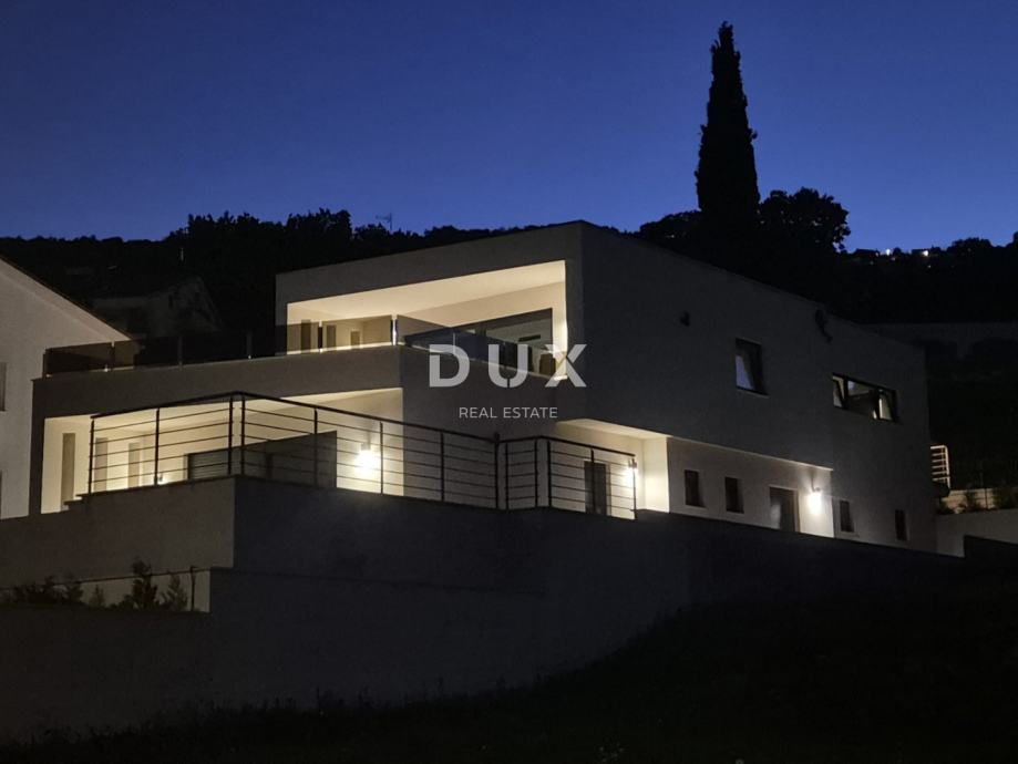 Tlocrtno je pažljivo osmišljen kako bi pružio maksimalnu udobnost i funkcionalnost. Otvoreni dnevni boravak s kuhinjom i blagovaonicom izlazi na prostranu natkrivenu terasu s koje se pruža panoramski pogled na Kvarnerski zaljev, otoke i mediteranski krajolik. Velike staklene stijene unose obilje prirodnog svjetla i dodatno naglašavaju osjećaj elegancije i prostranosti.