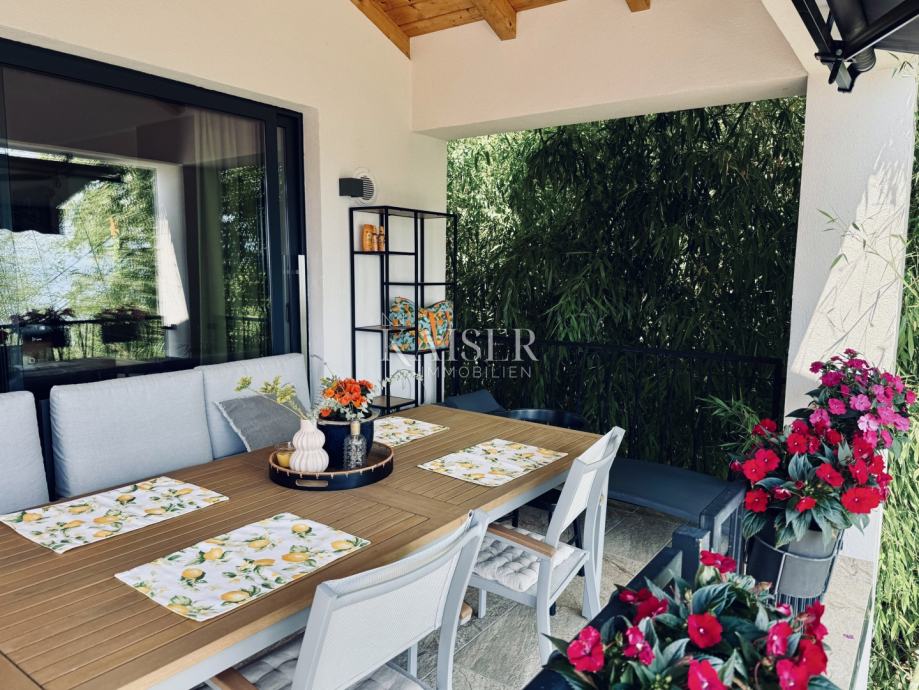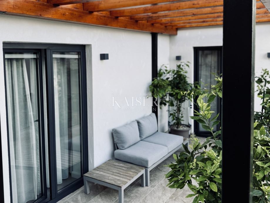 Obje spavaće sobe imaju pristup već spomenutoj trećoj terasi, koja je opremljena pergolom i lounge sjedećom garniturom.