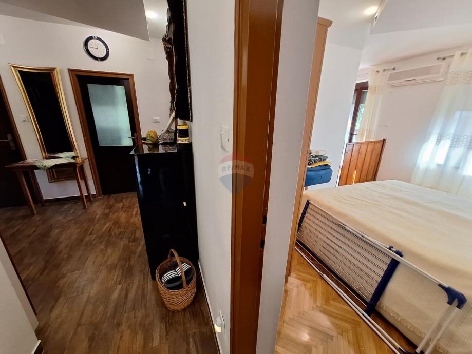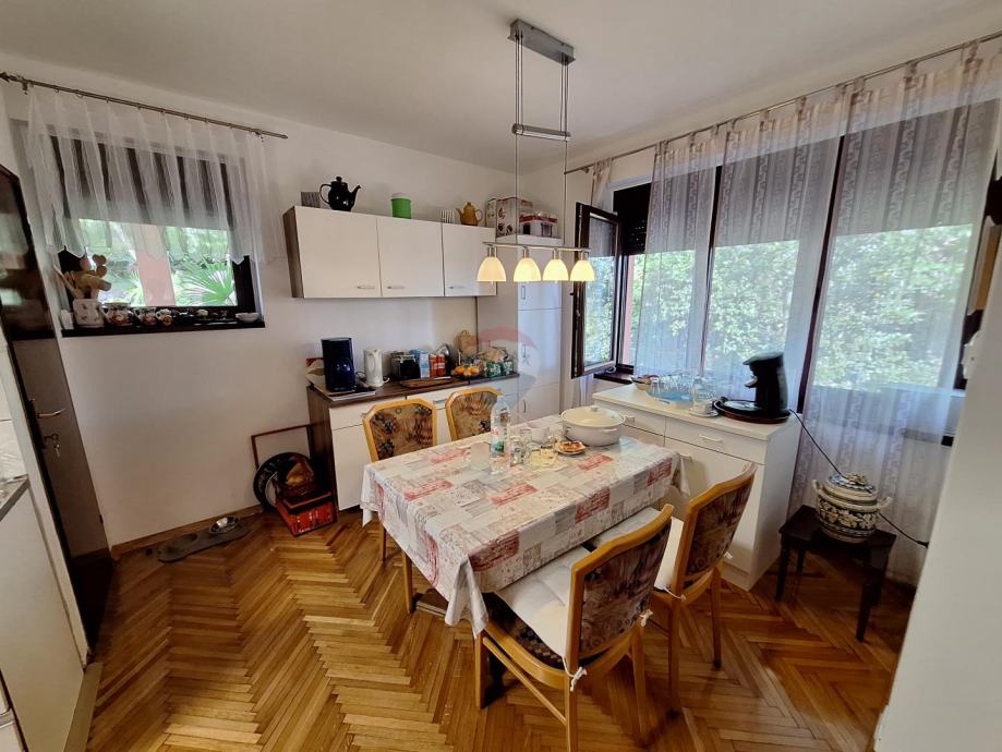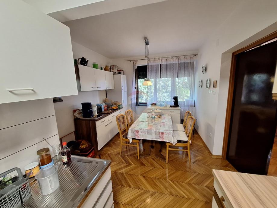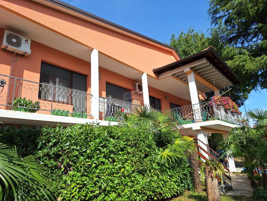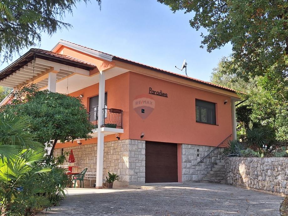 Sastoji se od dva odvojena stana u prizemlju i na katu, garaže i velike uređene okućnice s parkingom za više automobila.