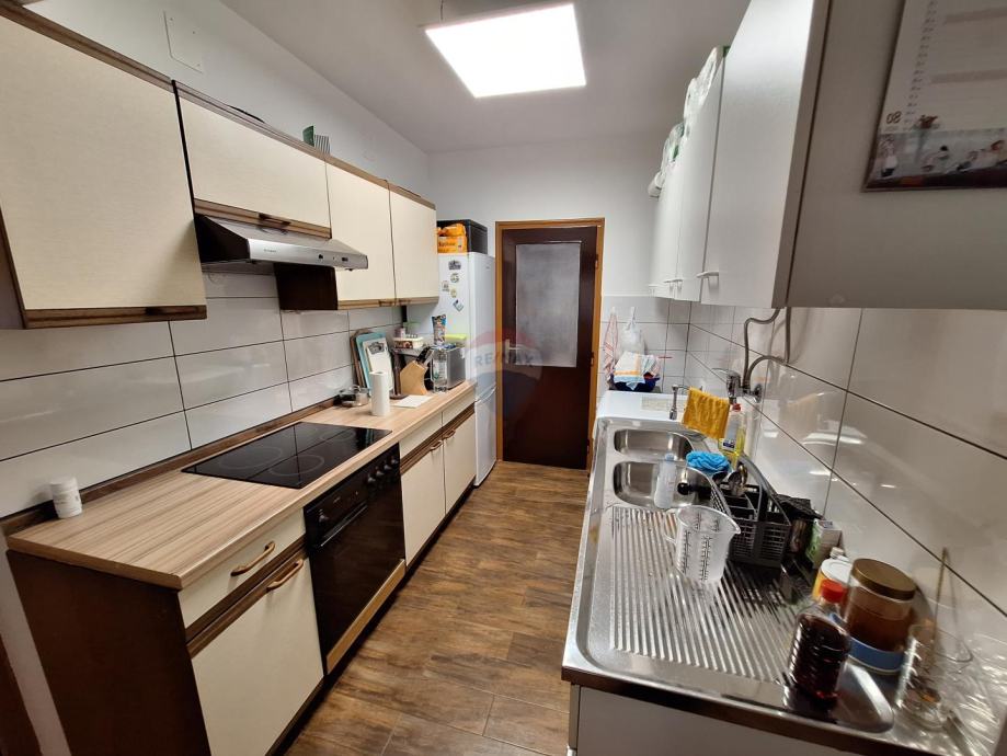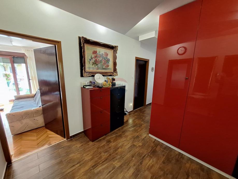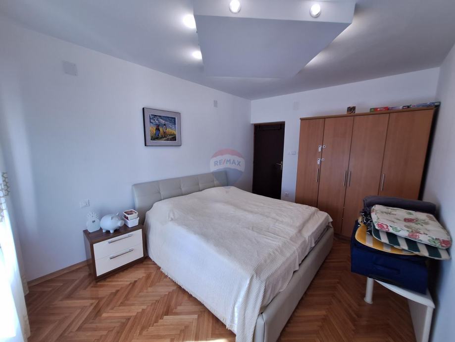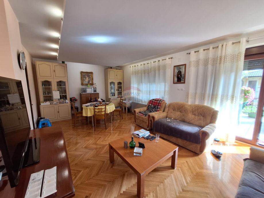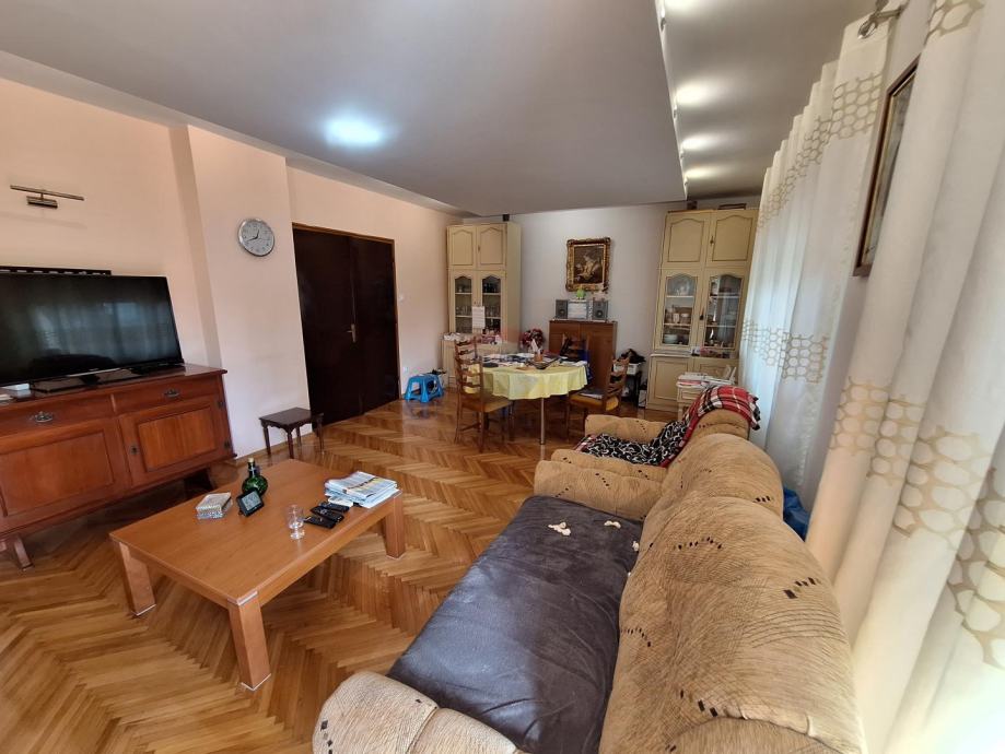 Sastoji se od dva odvojena stana u prizemlju i na katu, garaže i velike uređene okućnice s parkingom za više automobila.