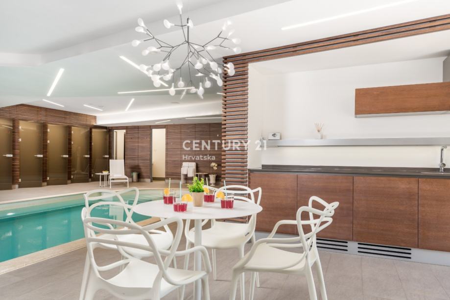 UNUTARNJI BAZEN: Objekt ima unutarnji grijani bazen namjenjen isključivo vlasnicima stanova i njihovim gostima. Svaki stan ima svoje spremiše uz bazen. U tom se dijelu nalaze i tuševi, sanitarije, zajednička kuhinja i terasa s pogledom na more.