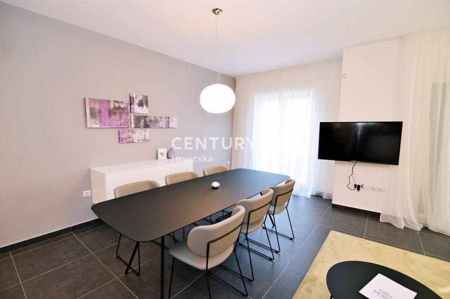 Sastoji se od kuhinje iz koje se pruža prekrasan pogled na more, dnevnog boravka, dvije spavaće sobe, terase, kupaonice, toaleta i ostave.