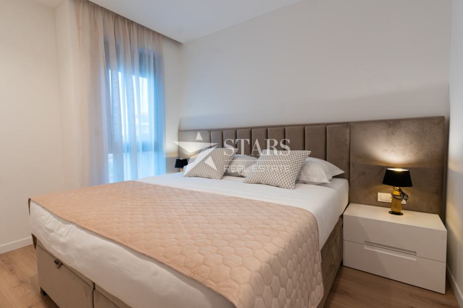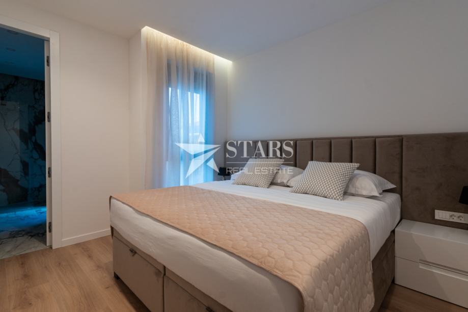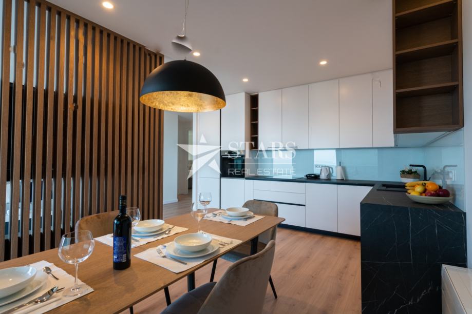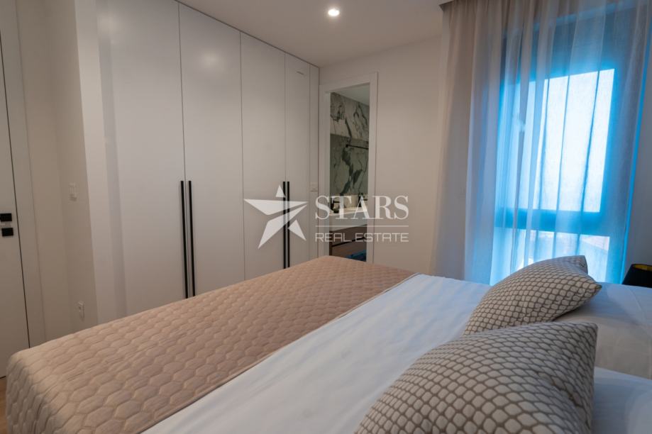 Iznajmljuje se luksuzno uređen i potpuno opremljen stan smješten na prvom katu moderne zgrade s liftom, u samom centru Opatije, udaljen svega 250 metara od mora. Stan površine 100 m² sastoji se od dvije prostrane spavaće sobe, dvije kupaonice, hodnika te otvorenog dnevnog boravka s kuhinjom i blagovaonicom. Iz dnevnog dijela izlazi se na veliku terasu, idealnu za uživanje u pogledu na Kvarner.
