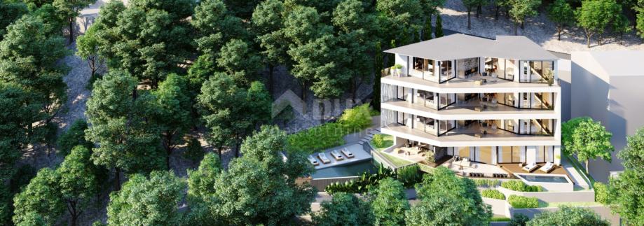 Posredujemo u prodaji luksuzne novogradnje s pogledom na more i Opatiju. Zgrada će biti ekskluzivne gradnje s bazenom, liftom, garažom i prostranim terasama. Nalazi se na vrhu brega i okružena je zelenilom. Rijetkost i prilika za sve vrste kupaca.