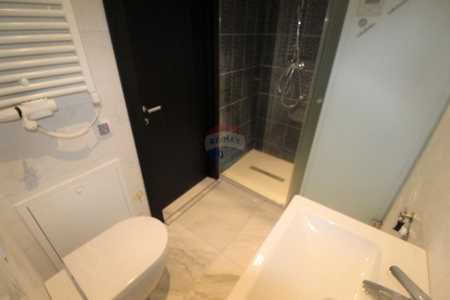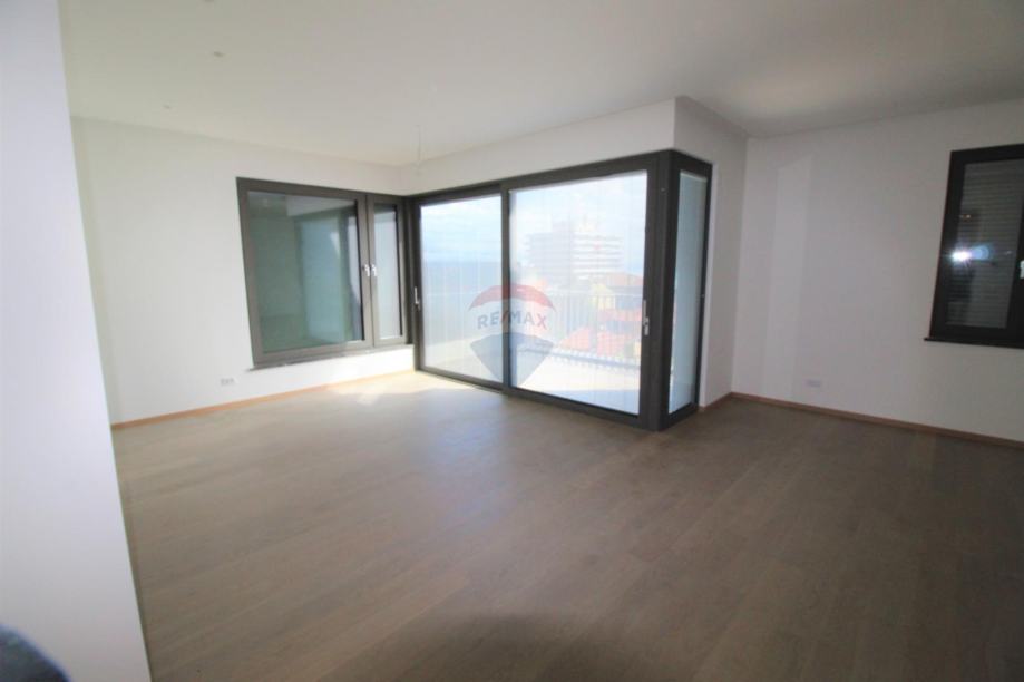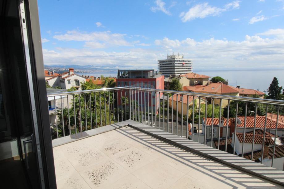 OPATIJA CENTAR - dvosobni stan s dnevnim boravkom, 2 kupaonice, lođom i balkonom smješten je na 3. katu luksuzne novogradnje s pogledom na Opatiju i more.