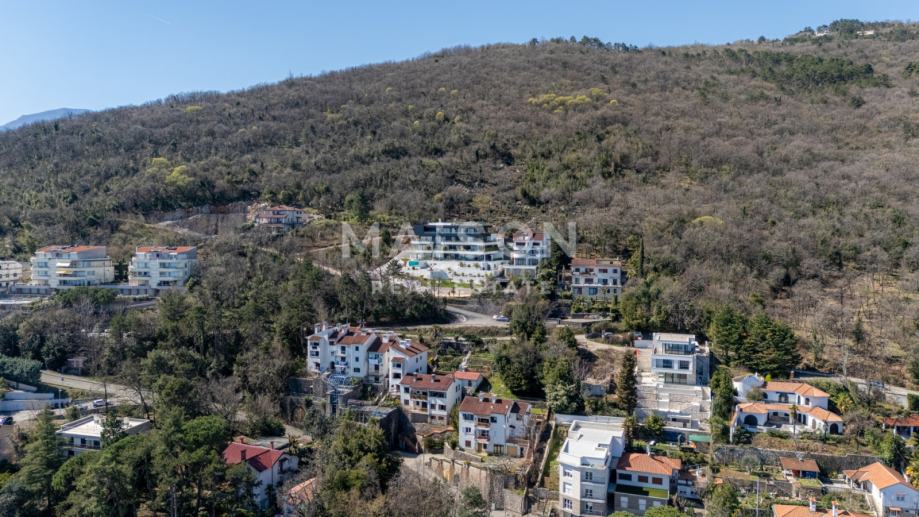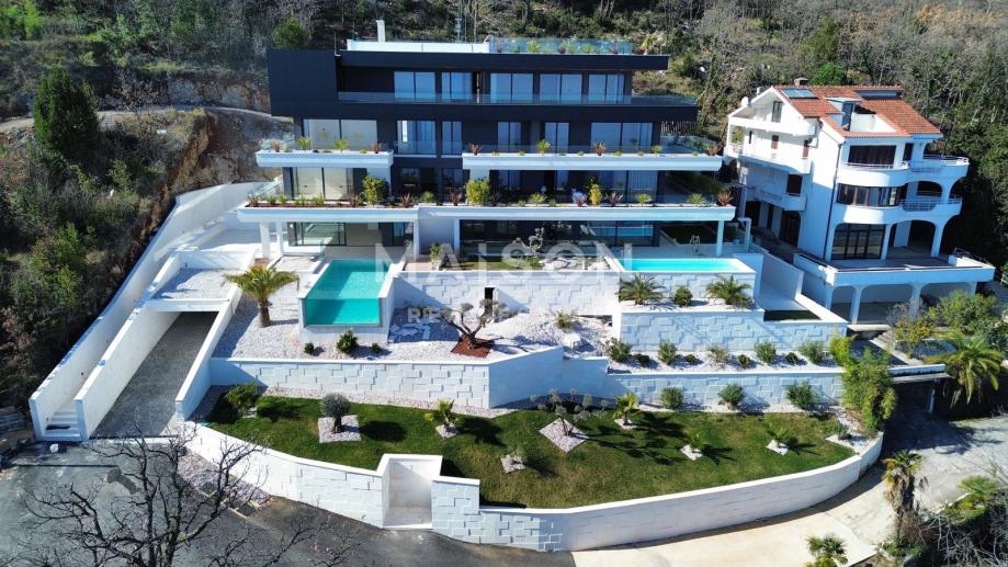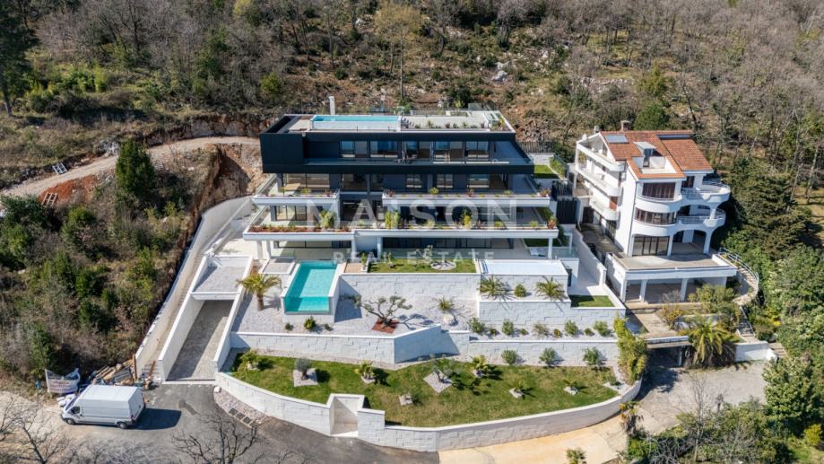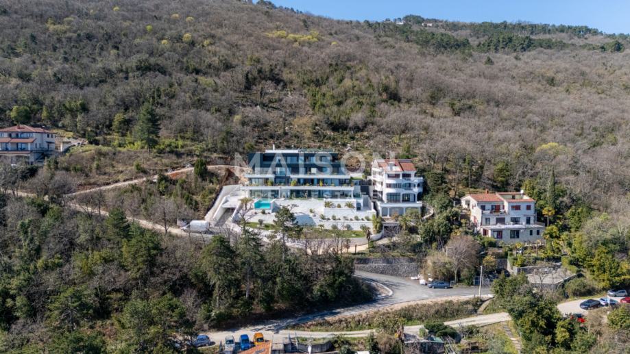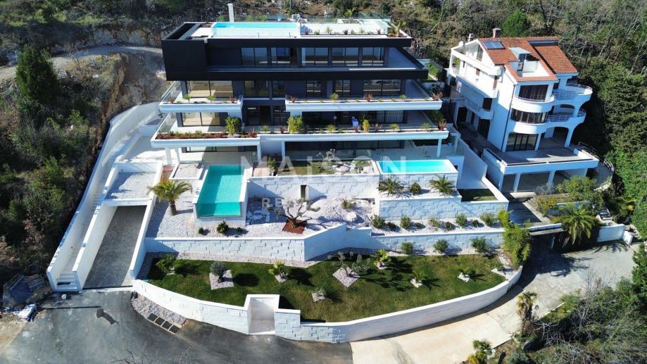 Luksuzni stan smješten u blizini centra Opatije, s panoramskim pogledom na more. Ova izuzetna lokacija pruža potpunu privatnost, a istovremeno je u neposrednoj blizini svih potrebnih sadržaja. Stan se nalazi na drugom katu i prostire se na 360,38 m².