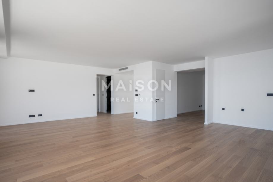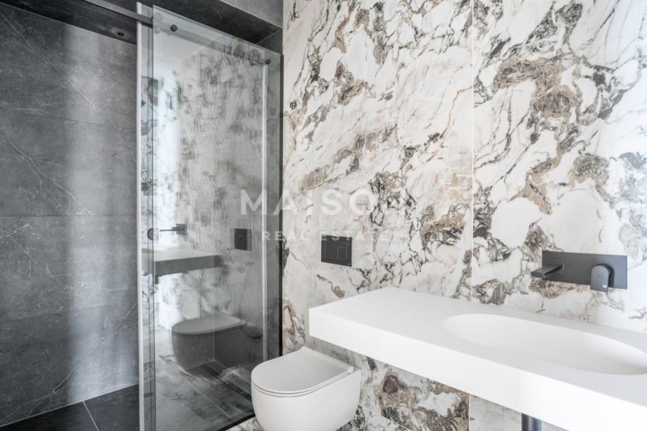 Stan obuhvaća tri elegantne spavaće sobe, tri luksuzne kupaonice, walk-in ormare, gostinjski WC, prostrani dnevni boravak, blagovaonicu i kuhinju u modernom otvorenom konceptu. Cijeli prostor dnevnog boravka, blagovaonice i kuhinje obasjan je prirodnim svjetlom zahvaljujući staklenoj stijeni koja se proteže duž cijelog prostora, a iz nje se izlazi na predivan balkon ukupne površine 28,95 m², koji uključuje natkriveni i nenatkriveni dio s spektakularnim pogledom na more.