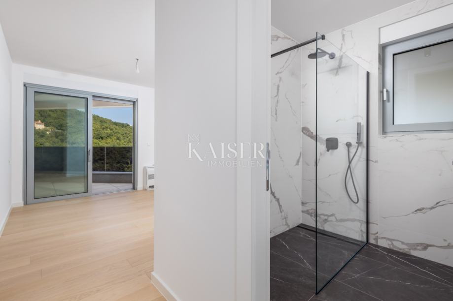 Ova vrhunska nekretnina vam pruža moderni dizajn, luksuznu eleganciju, privatnost i udobnost, te spektakularni pogled na centar Opatije i more, a svojim modernim arhitektonskim stilom i najfinijim materijalima postavlja nove standarde luksuza. Zahvaljujući položaju u mirnom dijelu Opatije, uživat ćete u osjećaju privatnosti i mira te istovremeno u zadivljujućem pogledu na centar Opatije i šarmantnu obalu Jadranskog mora.
