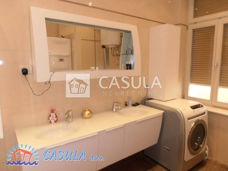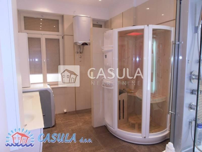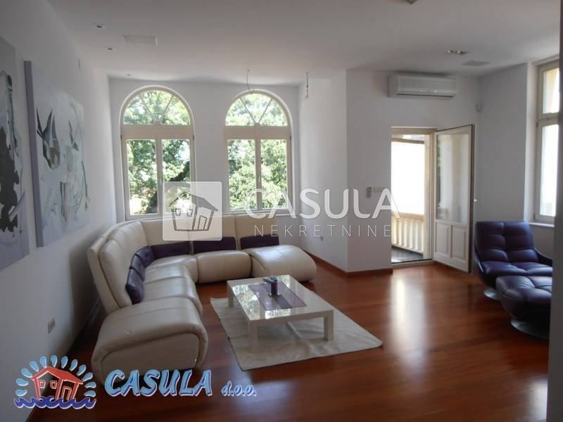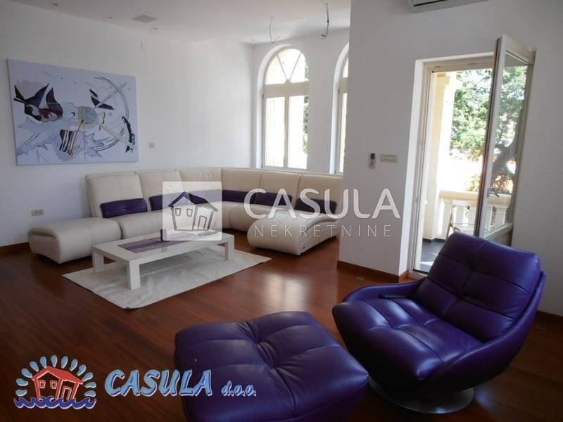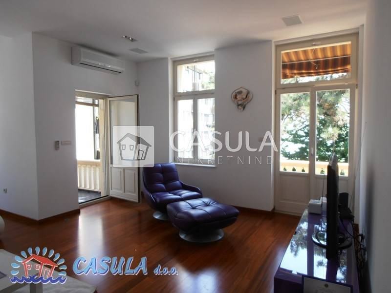 LUKSUZNO UREĐEN I NAMJEŠTEN STAN U STAROJ VILI, 50-tak m OD MORA. STAN IMA DVIJE VEĆE SPAVAĆE SOBE, KUHINJU SA BLAGOVAONOM, VELIKI DNEVNI BORAVAK, KUPAONU I DVIJE TERASE. STANU PRIPADA I GARAŽA UZ KUĆU TE PARKIRNO MJESTO ISPRED GARAŽE