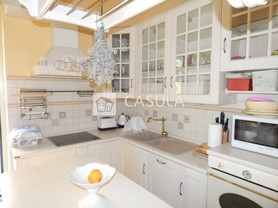 OPATIJA - Tihi centar, luksuzni stan u manjoj, vrlo lijepoj, staroj vili. Stan ima 129 m2, zauzima cijelu etažu na 1.katu a pripada mu i potkrovlje na kojem se nalazi lijepo uređena soba i kupaona. Na prvoj etaži nalaze se dvije sobe, kuhinja s blagovaonom te veliki dnevni boravak i 2 kupaone. Cijeli stan je vrlo lijepo uređen i namješten a dodatno mu diže kvalitetu velika terasa površine 38 m2. U sklopu okućnice nalazi se jedno parkirno mjesto. Vila se nalazi u parku, 2 minute hoda do ulice Maršala Tita i svih sadržaja i mora.