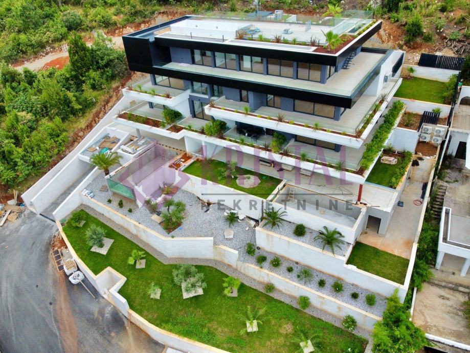 Novogradnja sa ukupno 8 luksuznih stanova, svaki stan ima svoje spremište u podrumu, garažna parkirna mjesta. Stanovi u prizemlju, na 2.katu i penthouse imaju svoje vlastite bazene.
