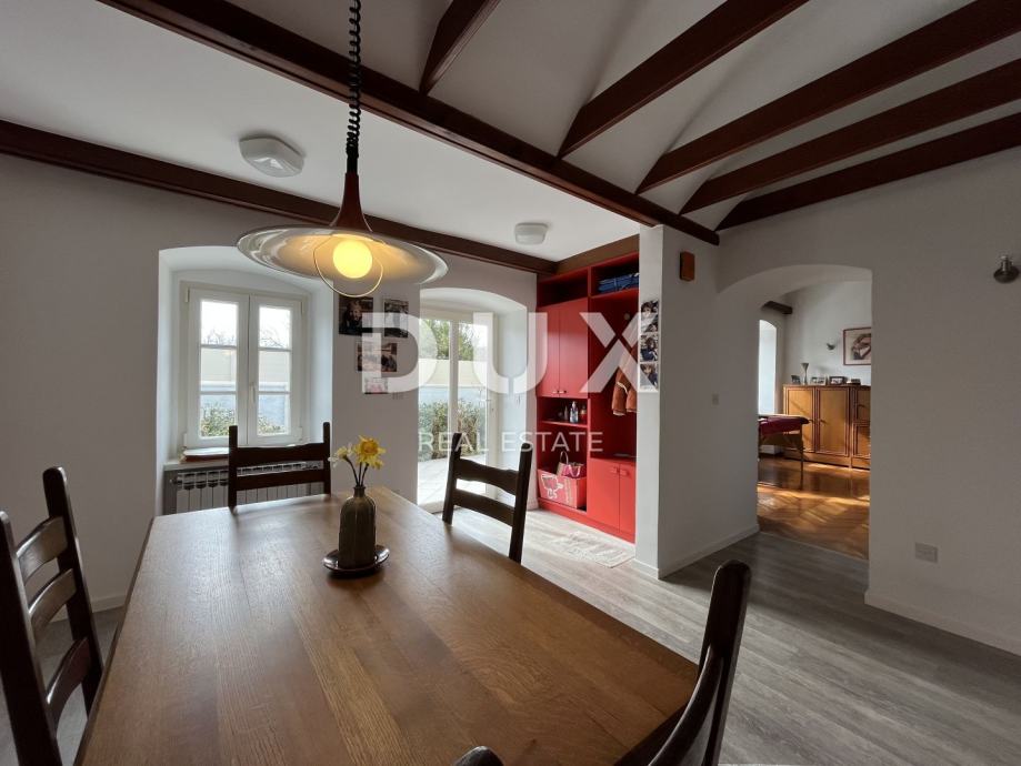 Matulji stan 98m2 s terasom 35m2 na prizemlju zgrade s tri stana. Sastoji se od dvije spavaće sobe dnevnog boravka, kuhinje s blagovaonicom, dvije kupaonice, hodnika, kotlovnice i spremišta. Prodaje se potpuno namješten s kuhinjom rađenom po mjeri i novom bijelom tehnikom. Grijanje je putem radijatora na loz ulje. Terasa od 35m2 uredna i prostrana idealna za opuštanje.
