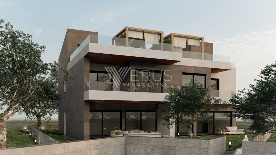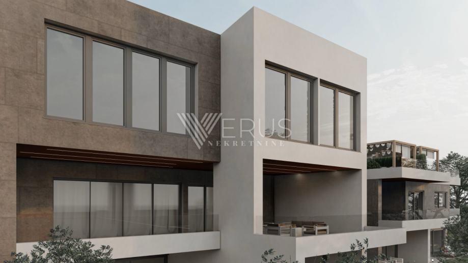 Cijeli stan odiše modernim dizajnom, toplim tonovima i visokokvalitetnim materijalima koji osiguravaju dugotrajnost i eleganciju. Privatni vrtovi, balkoni i terase povezuju unutarnji i vanjski prostor, unoseći svjetlost, prostranost i osjećaj slobode življenja.
