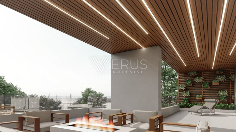 Cijeli stan odiše modernim dizajnom, toplim tonovima i visokokvalitetnim materijalima koji osiguravaju dugotrajnost i eleganciju. Privatni vrtovi, balkoni i terase povezuju unutarnji i vanjski prostor, unoseći svjetlost, prostranost i osjećaj slobode življenja.