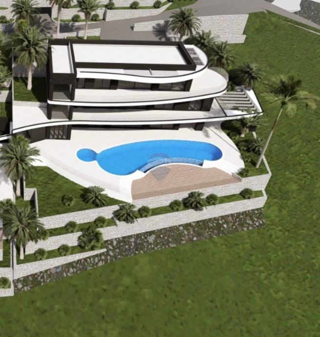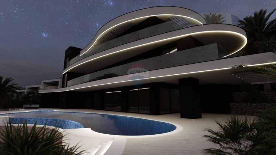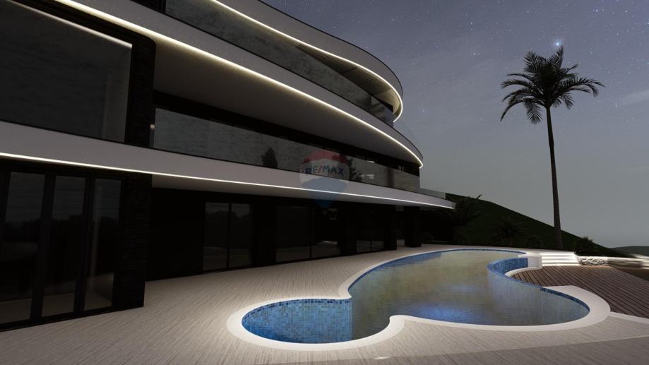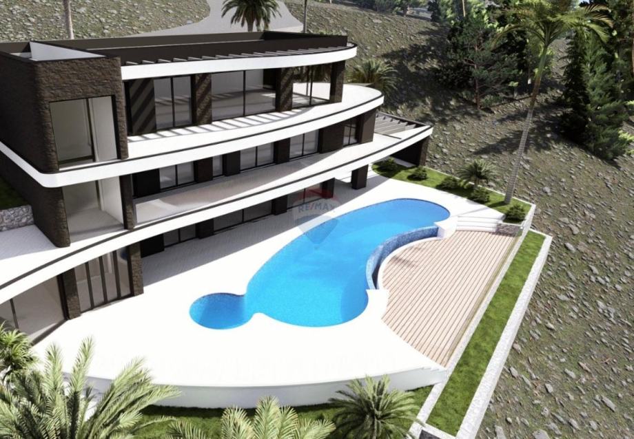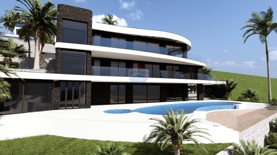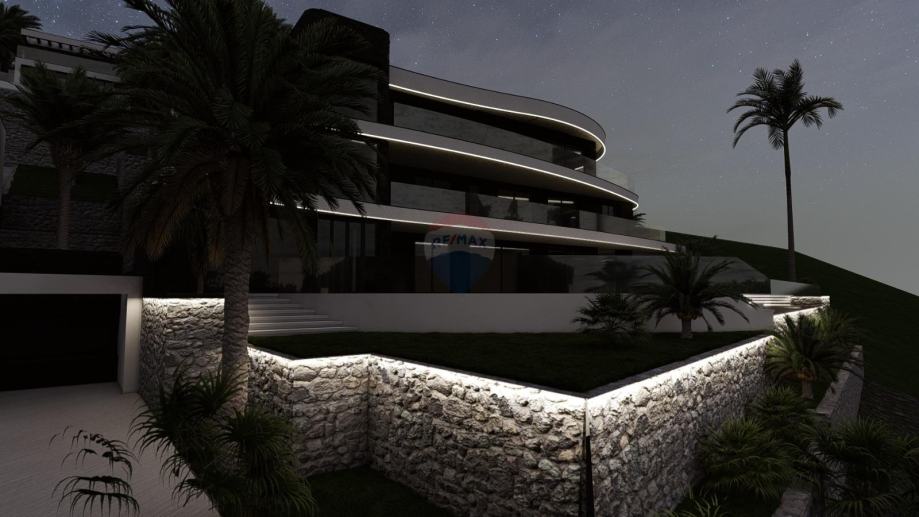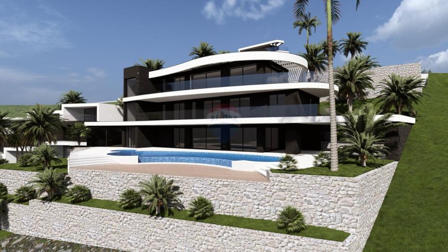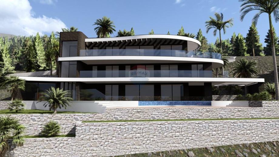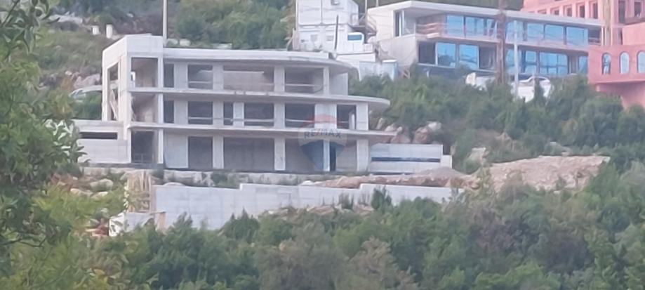 OPATIJA - MEDVEJA - Prodajemo samostojeću kuću na samo nekoliko desetaka metara od mora, u fazi izgradnje. U ovom trenutku ( tako se i prodaje ) obijekt je betonski izveden na tri etaže. Radi se o prizemlju, prvom i drugom katu. Bazen nije napravljen, ali je ostavljen prostor za njega. Kuća je koncipirana kao jedan veliki stan ( 6S+DB ) koji se proteže na tri nivoa. Stambeni dio kuće prostire se na 428 m2 netto površine, a sastoji se od 6 spavaćih soba, dva dnevna boravka, 6 kupaonica i 6 WC-a. hodnik, stepenište i panoramski lift. Terase i balkoni zauzimaju dodatnih 275 m2 i sa svake etaže pruža se predivan pogled na more. Okućnica kuće zauzima oko 900 m2. Objekt je okrenut prema jugoistoku.