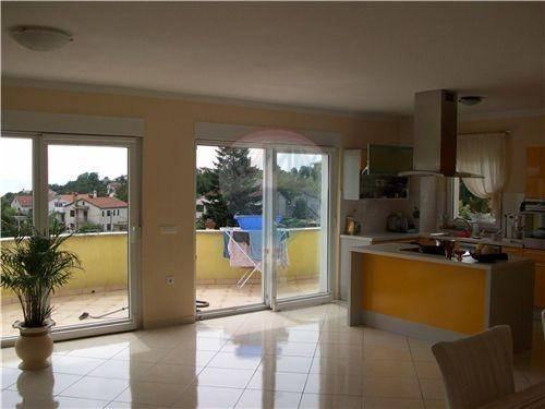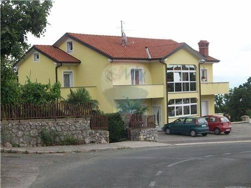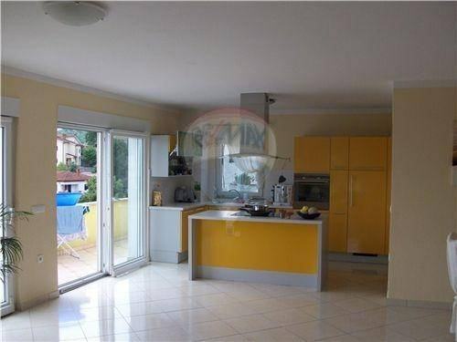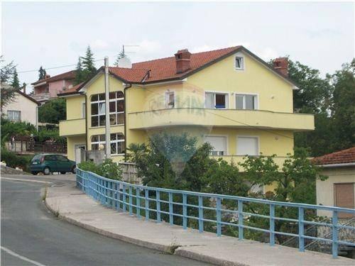 OPATIJA-Mihotići- Samo 1,9 km od centra opatije u pitomom kraju smjestila se nova kuća izgradjena i završena prije tri godine. Okrenuta prema jugoistoku osigurava svojim vlasnicima cijelodnevi kontakt sa suncem, a balkoni na prvom i drugom katu koji opasuju pola kuće omogućavaju predivan panoramski pogled iz svih pozicija prema moru, i Rijeci.Inače kuća se smjestila na parceli od 1750 m2.Kuća se prostire tlocrtno na cca 150 m2 površine, a čine je P+2+(neurdjeni tavan).U prizemlju se nalazi 1 apartman, 2 studia te 3 spavaće sobe sa kuhinjom i kupaonom ukupne površine 147 m2.Na prvom katu, (sa ceste je to prizemlje), nalaze se dva poslovna prostora sa dvije kupaone i dvije kuhinje.Na drugom katu je stan od 147 m2 - 3S+DB sa velikim balkonom.Svi opisani prostori su kompletno uredjeni i opremljeni. U cijeloj kući je postavljeno podno centralno grijanje na lož ulje. Unutarnja vrata, keramika, sanitarije, unutarnje stepenice izradjene od veoma kvalitetnih materijala. Ulazna vrata protuprovalna od aluminija. Cijela kuća je etažirana, a postoji mogućnost i izrade bazena na pripadajućem terenu.