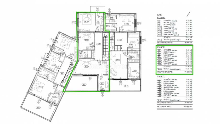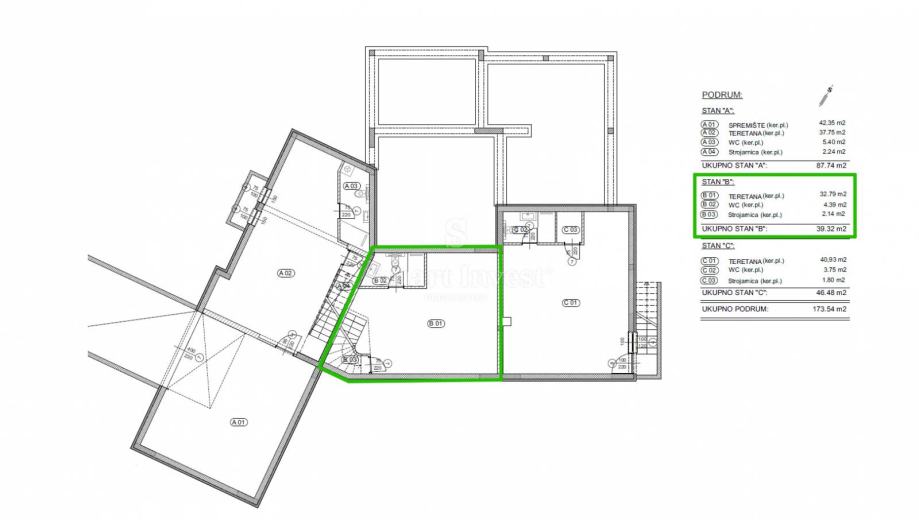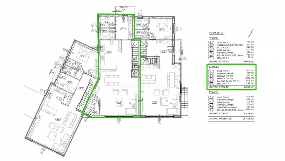 KUĆA B - površina 213.94 m2 - ima 3 spavaće sobe, 4 kupaonice + 1 WC.