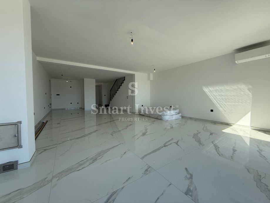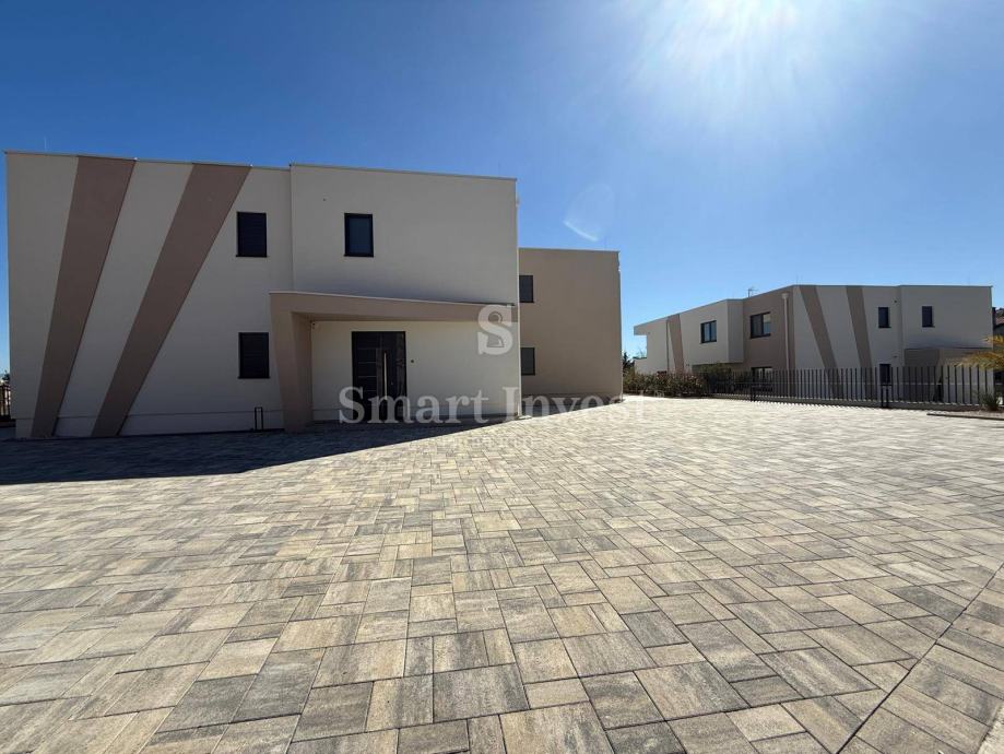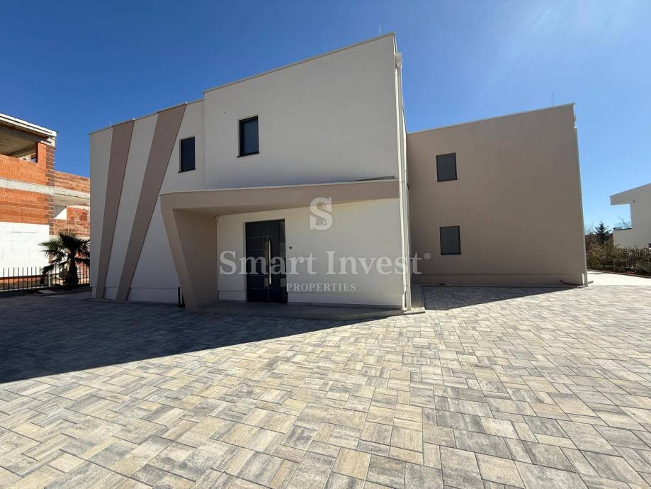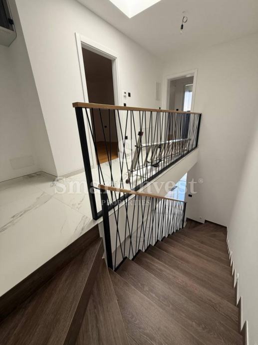 U prizemlju se nalazi ulaz, kupaonica, praona, strojarnica, dnevni boravak s kuhinjom i blagovaonicom. Na prvom katu se nalazi stubište i hodnik, master spavaća soba s vlastitom kupaonicom i walk-in garderobom te izlazom na lođu, još dvije spavaće sobe s vlastitim kupaonicama.