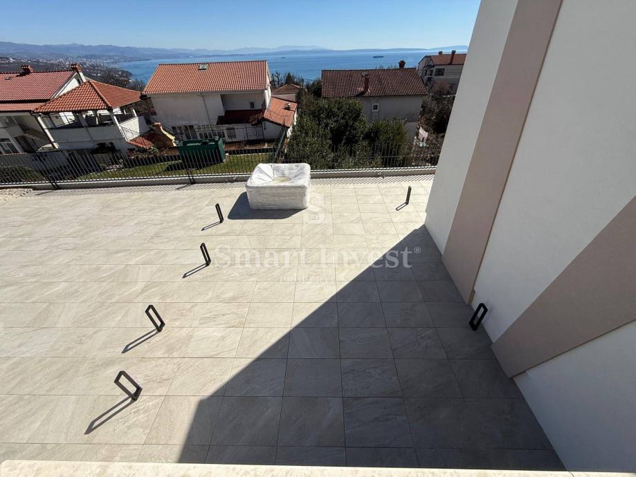 OPATIJA, Na prodaju je moderna kuća u nizu s bazenom na lijepoj i mirnoj lokaciji s pogledom na more, nedaleko mora i centra Opatije. Planirani završetak radova - 04/2024.