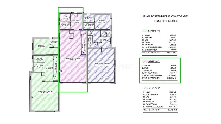 • 3 parkirna mjesta PM4, PM5, PM6 (3 x 12.50 m2)