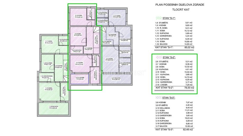 • sveukupna neto korisna površina s pripadcima: 171.46 m2