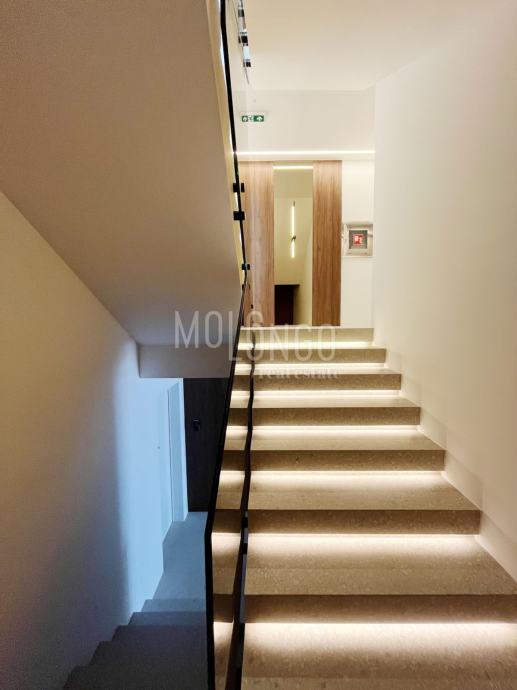 Cijela zgrada odiše luksuzom! Hodnik zgrade je dekoriran podnom i zidnom rasvjetom koja se pali na senzor. Od garaže do kata vodi Vas gotovo nečujan lift a za one koje žele prošetati, do stana Vas vode kamene stube. Na svakom katu su samo 2 stana.